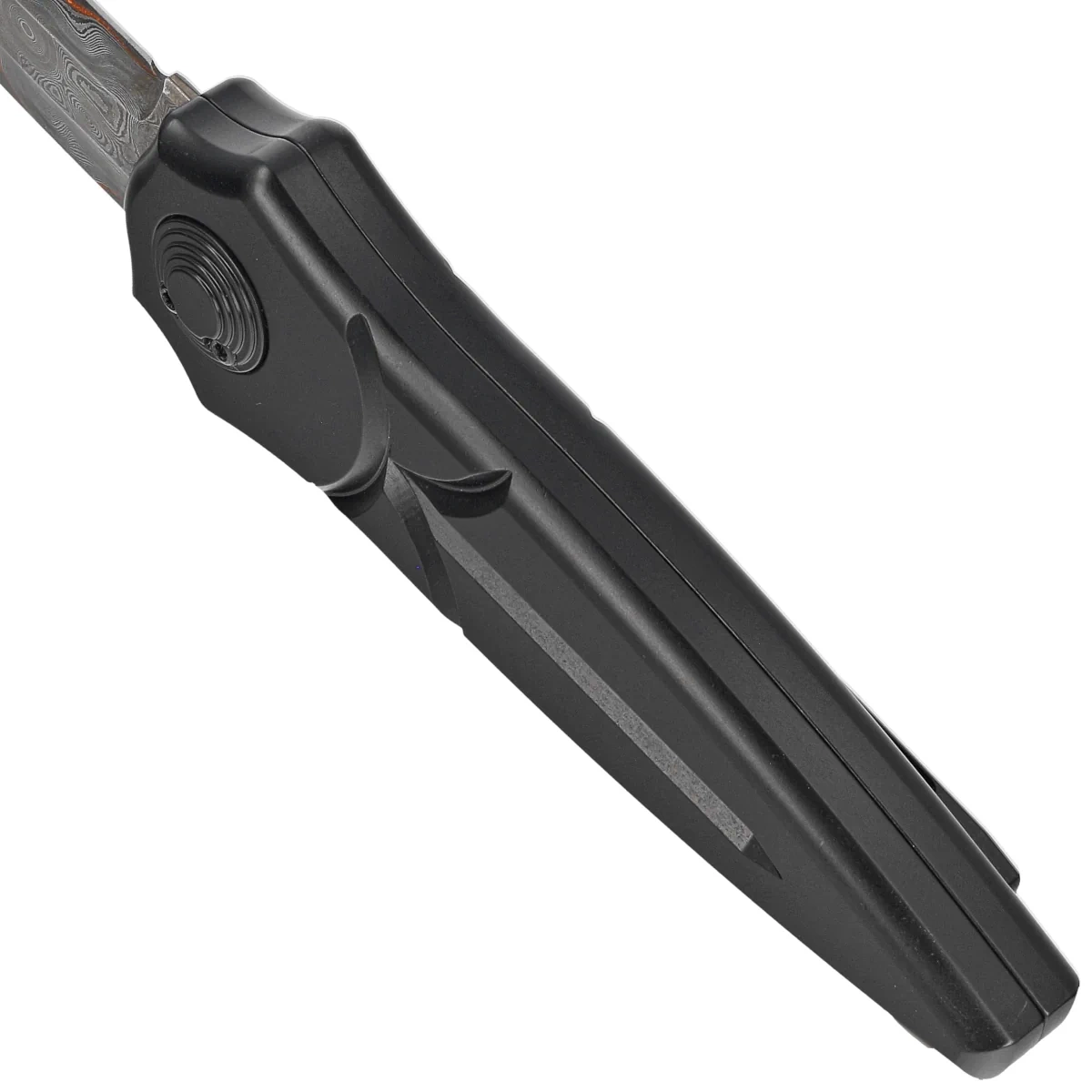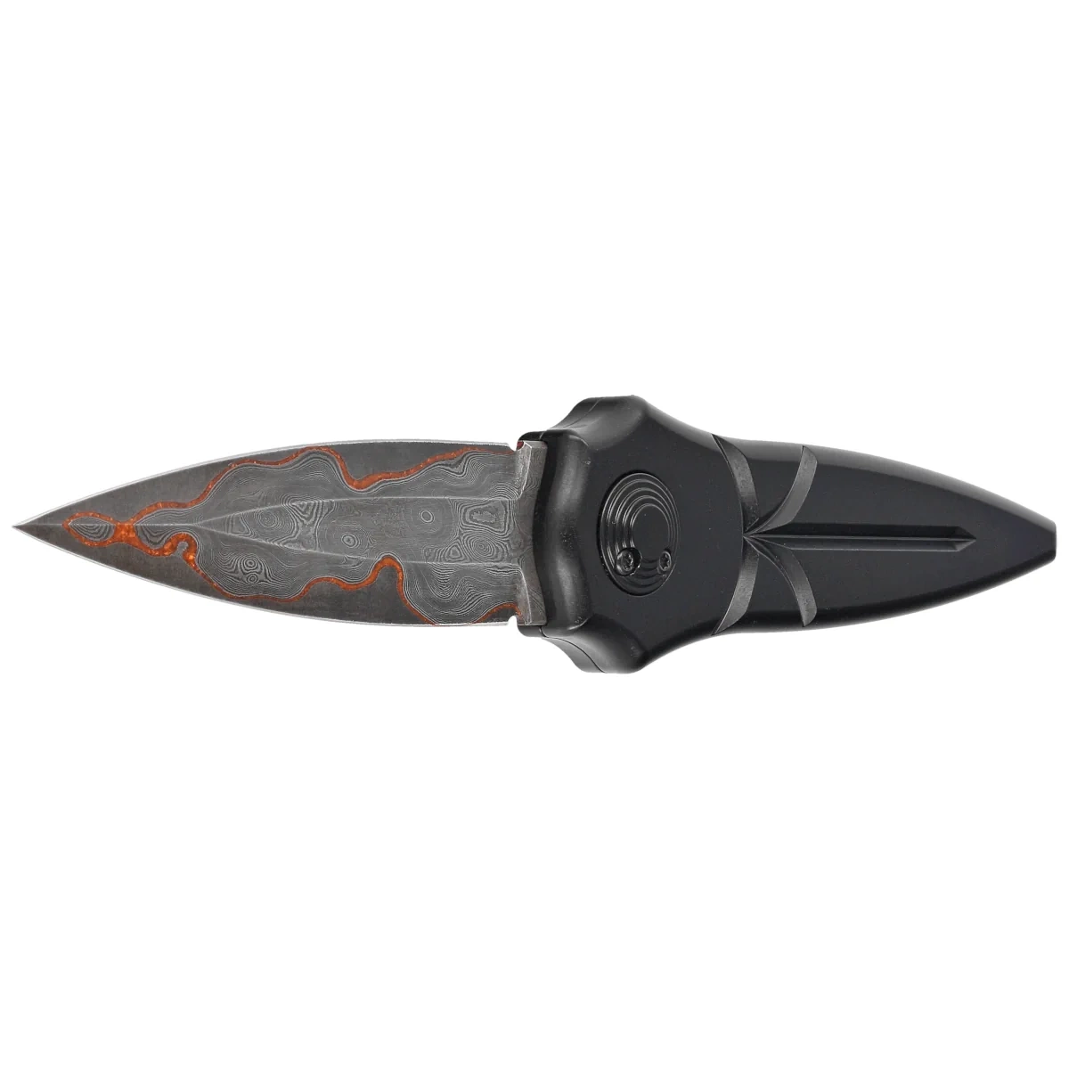 Głownia - typu Dagger, obustronnie ostrzona (Double Edge), trawiona kwasem dla podkreślenia wzorów damastu. Gładkie ostrze Plain wyprowadzono szlifem płaskim, który zapewnia wytrzymałość, doskonałą geometrię krawędzi tnącej oraz ekstremalną wydajność cięcia. Płynne i gładkie otwieranie grawitacyjne, blokada typu clamshell.
