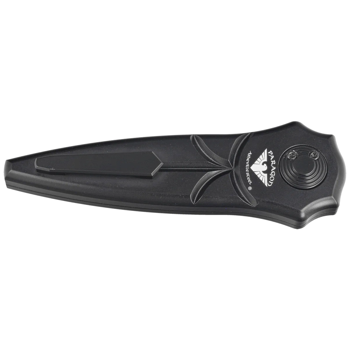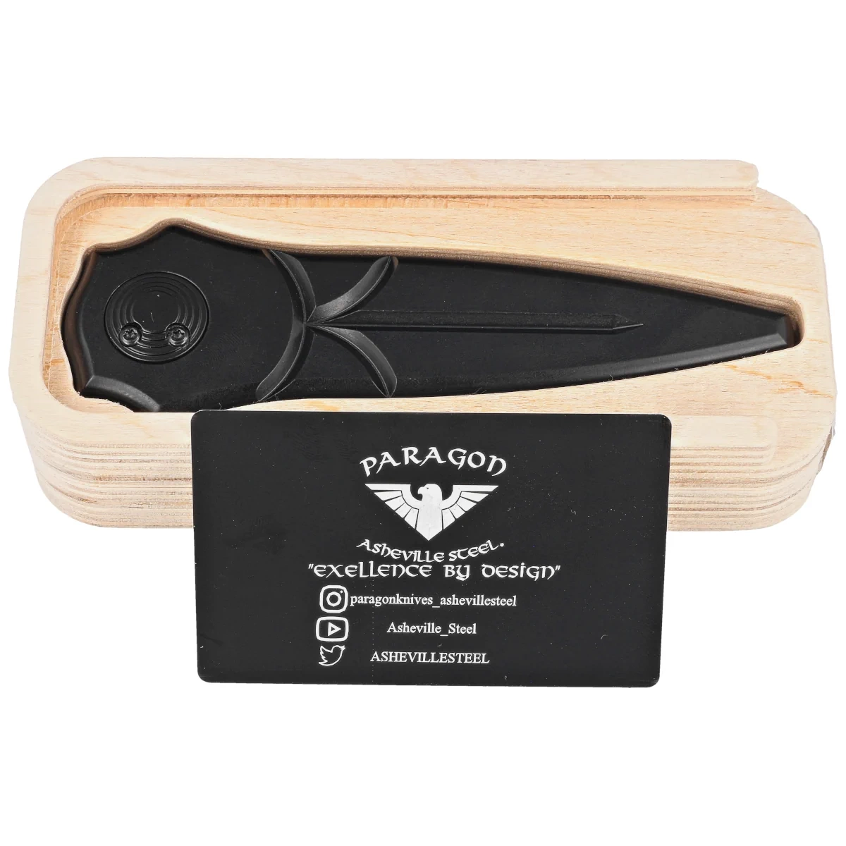 Nóż grawitacyjny Paragon Warlock-X Convergence Black Aluminium, Damascus Baker Forge Raindrop Gomai Copper Shim 80CRV (WLOCX-CV-B-BFD)