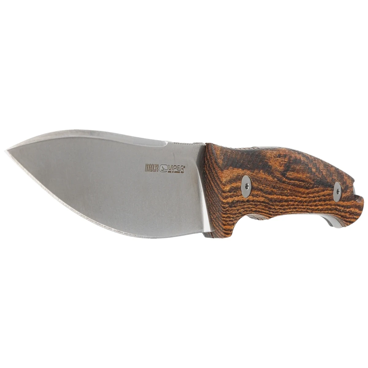 - Nordlys Bocote Wood, Satin, projektu Jensa Ansø. Solidny kawałek sprawdzonej stali nierdzewnej N690, wielofunkcyjny nóż włoskiej marki Viper. Wygodna rękojeść z drewna Bocote, pochwa z wysokojakościowej skóry z mocowaniem do pasa.