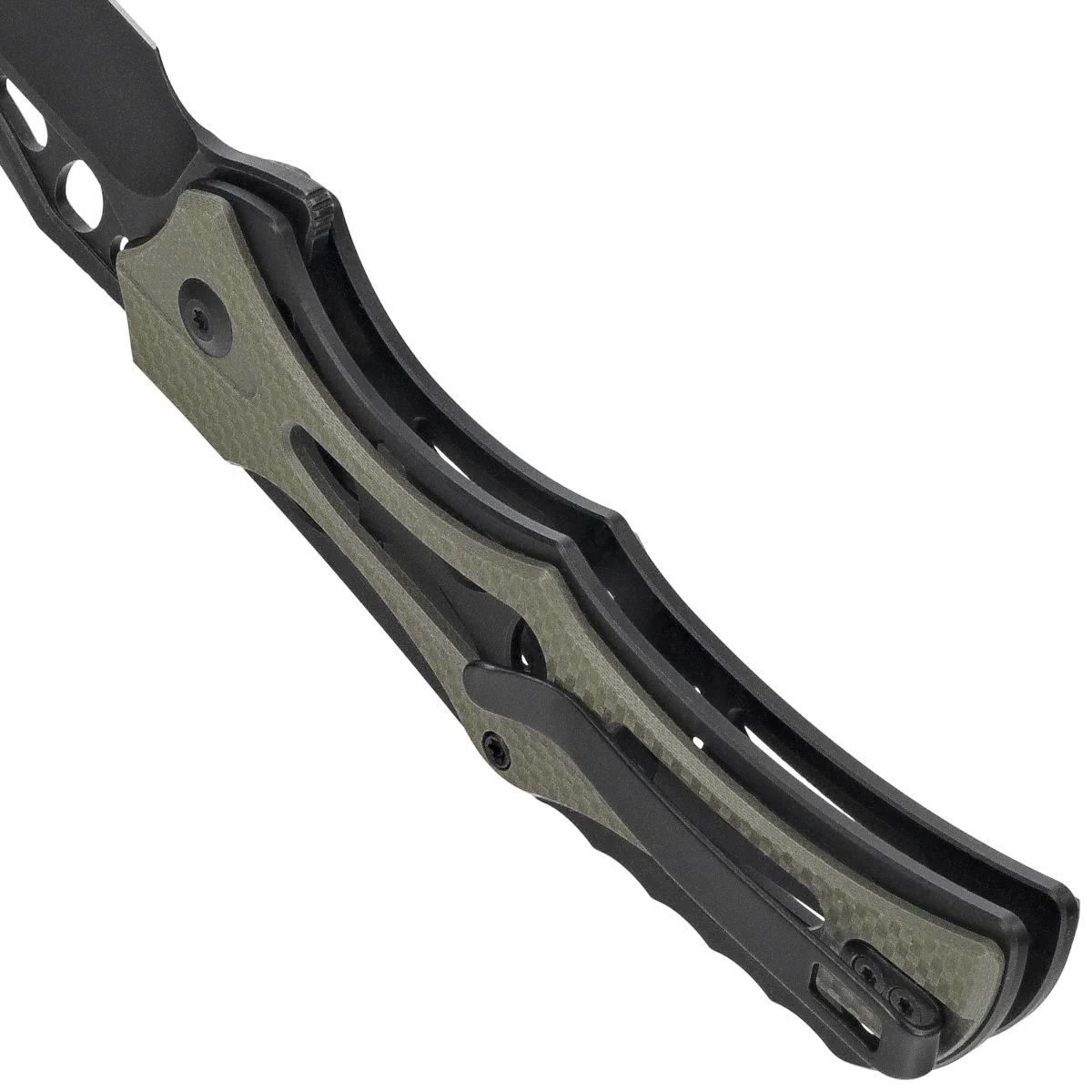 Biophase Black Aluminium / OD Green G10, Black Stonewashed, duży, uniwersalny nóż składany o awangardowej stylistyce. Głownia ze stali nierdzewnej Nitro-V, szkieletowe okładziny z aluminium i kompozytu G10. Wyjątkowo pewny chwyt!