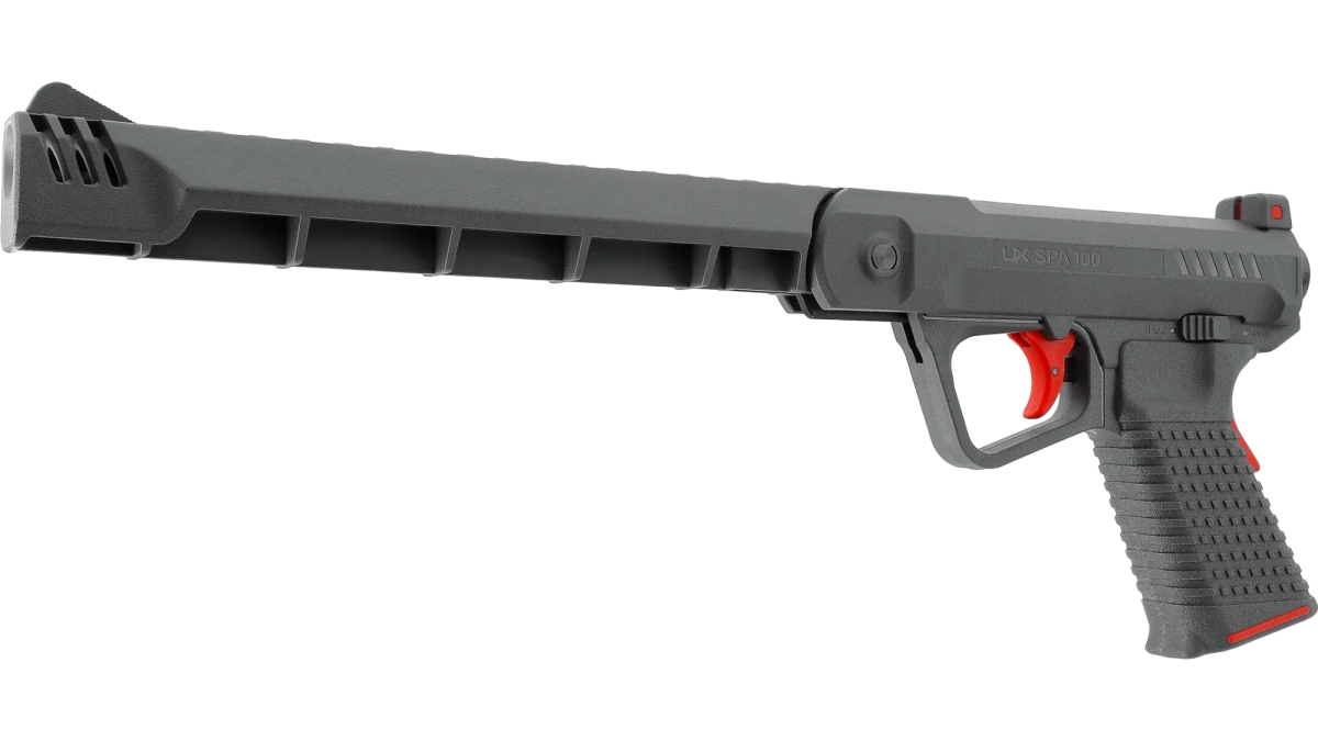 Wiatrówka Umarex UX SPA 100 została zaprojektowana z myślą o długotrwałym użytkowaniu. Polimerowa konstrukcja sprawia, że pistolet jest lekki, ale jednocześnie wytrzymały. Gwintowana lufa wewnętrzna, wykonana z metalu, stabilizuje lot śrutu, co przekłada się na zwiększoną precyzję strzałów. Długa linia celowania, sięgająca niemal całej długości wiatrówki, ułatwia precyzyjne celowanie, nawet dla początkujących strzelców.