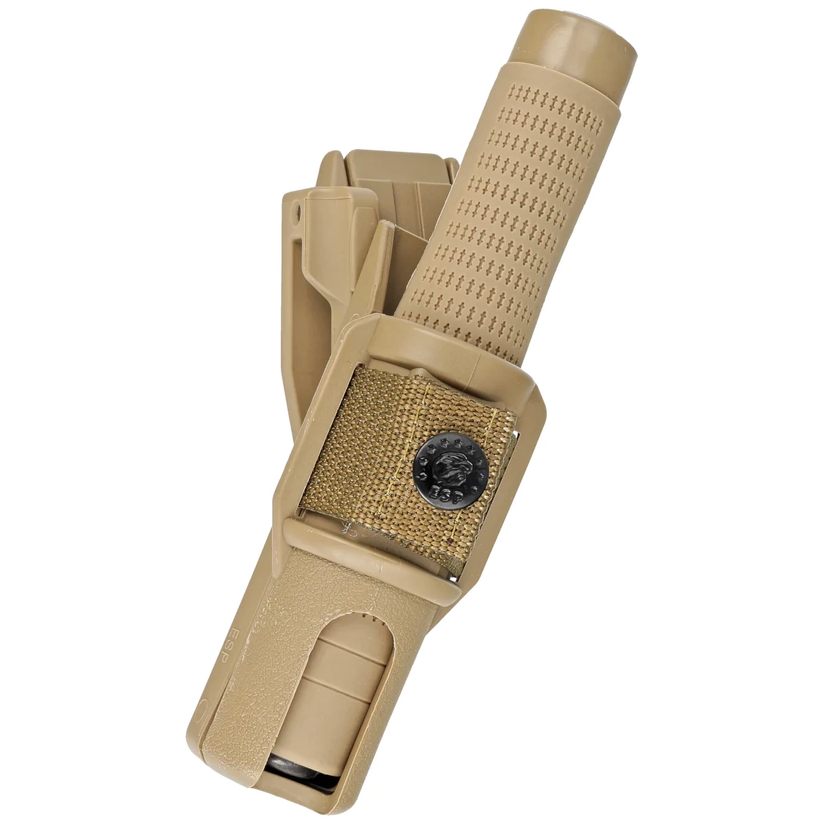 Profesjonalna hartowana pałka teleskopowa typu Friction Loc o długości 16 cali czeskiej firmy ESP z uchwytem Ergonomic. Wykonana w wersji militarnej z rękojeścią oraz uchwytem w kolorze khaki. Dla użytkowników ceniących kompaktowy rozmiar, niską wagę oraz łatwość skrytego przenoszenia. Wykonana z hartowanej stali zapewnia trwałość i niezawodność, idealna do intensywnego, profesjonalnego użytkowania. W zestawie profesjonalny, wypinany obrotowy uchwyt (360° Roto) BH-54 wykonany z wytrzymałego polimeru, wyposażony w mocowanie UBC-5 (Quick Change System).