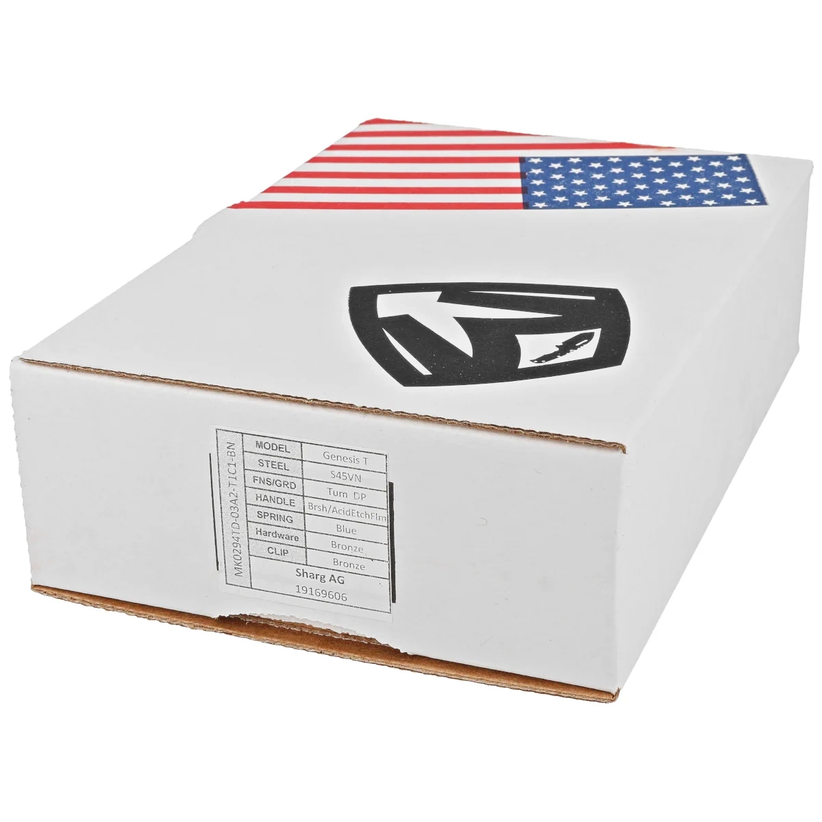 - Praetorian Genesis T Drop Point Brushed/Acid/Flamed Blue Titanium, Bronze HW/Clip, Tumbled mniejsza wersja flagowego Praetoriana z ręcznie wykonanym szlifem wklęsłym. To rzadkość w branży nożowej niewielu producentów potrafi ręcznie wykonać szlif wklęsły