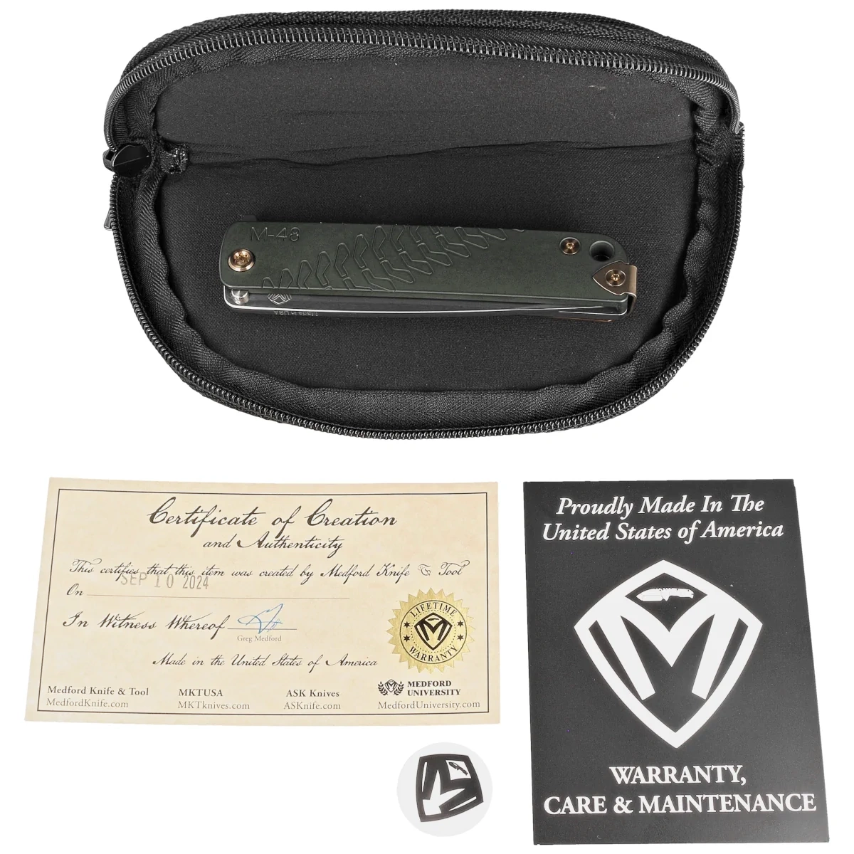 Nóż składany Medford M-48 Green Aluminium, Bronze HW/Clip, Tumbled S35VN by Greg Medford (MK2124TQ-40TM-T1C1-Q4)