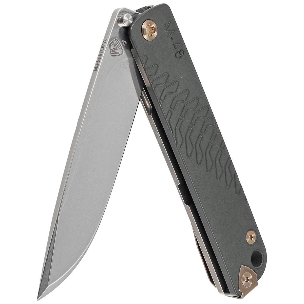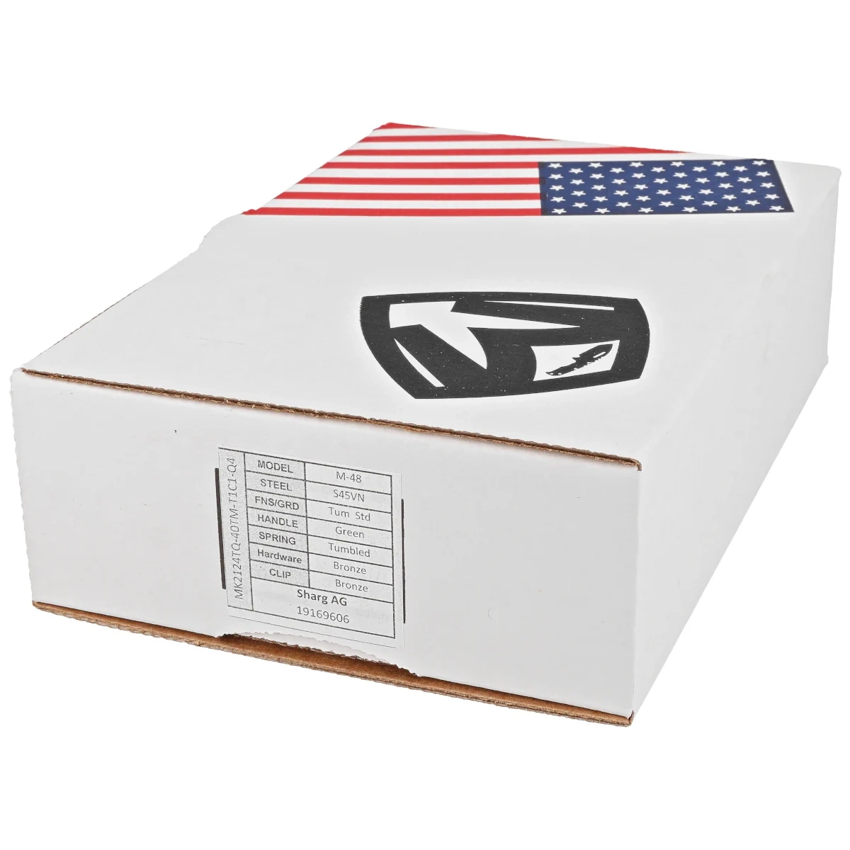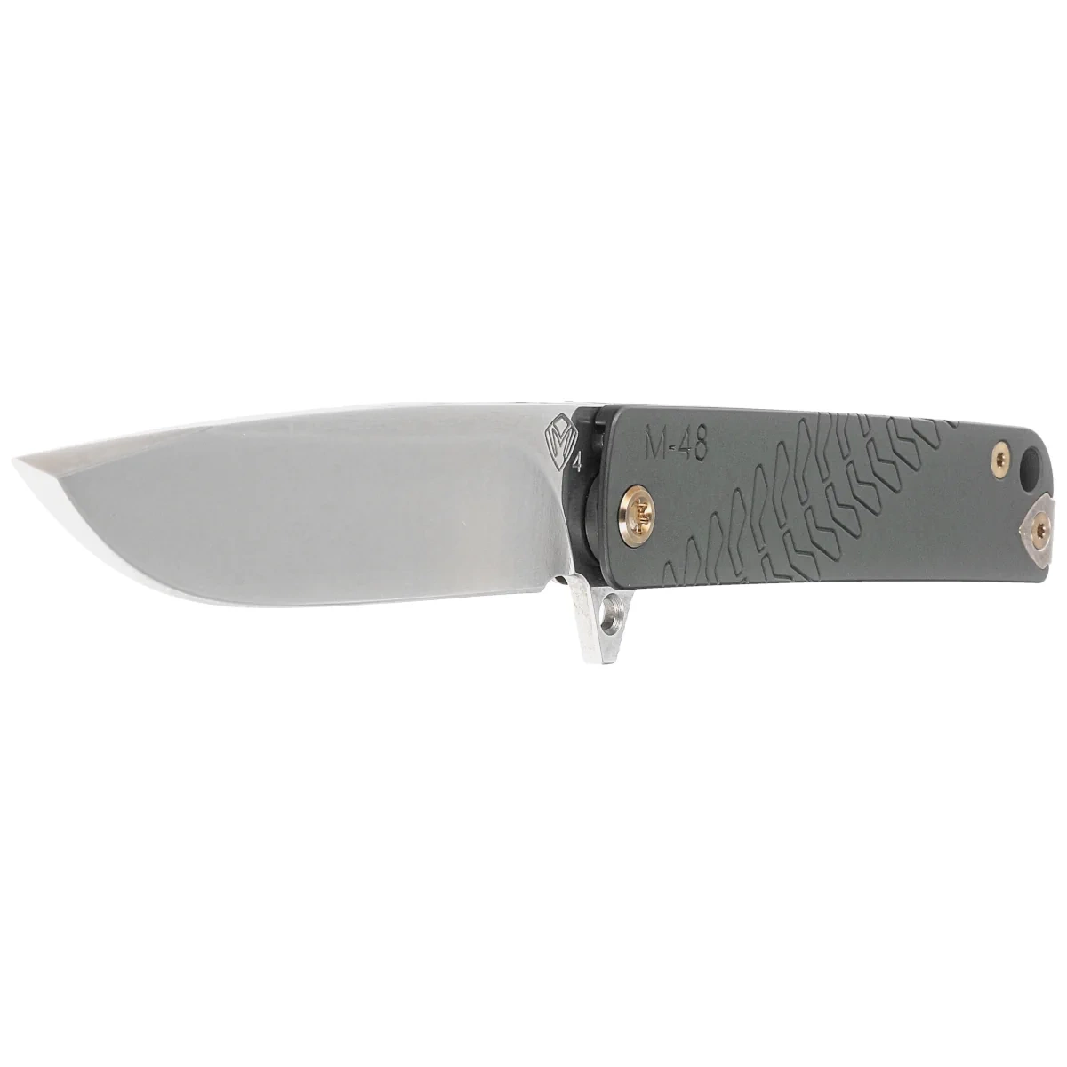 • M-48 Green Aluminium, Bronze HW/Clip, Tumbled to hołd dla czołgu M-48 Patton. Smukły nóż składany semi-custom z Medford Knife & Tool. Ręcznie szlifowane ostrze z innowacyjnym czubkiem Magnus Edged. Dla tych którzy lubią smuklejsze noże niż Praetorian.