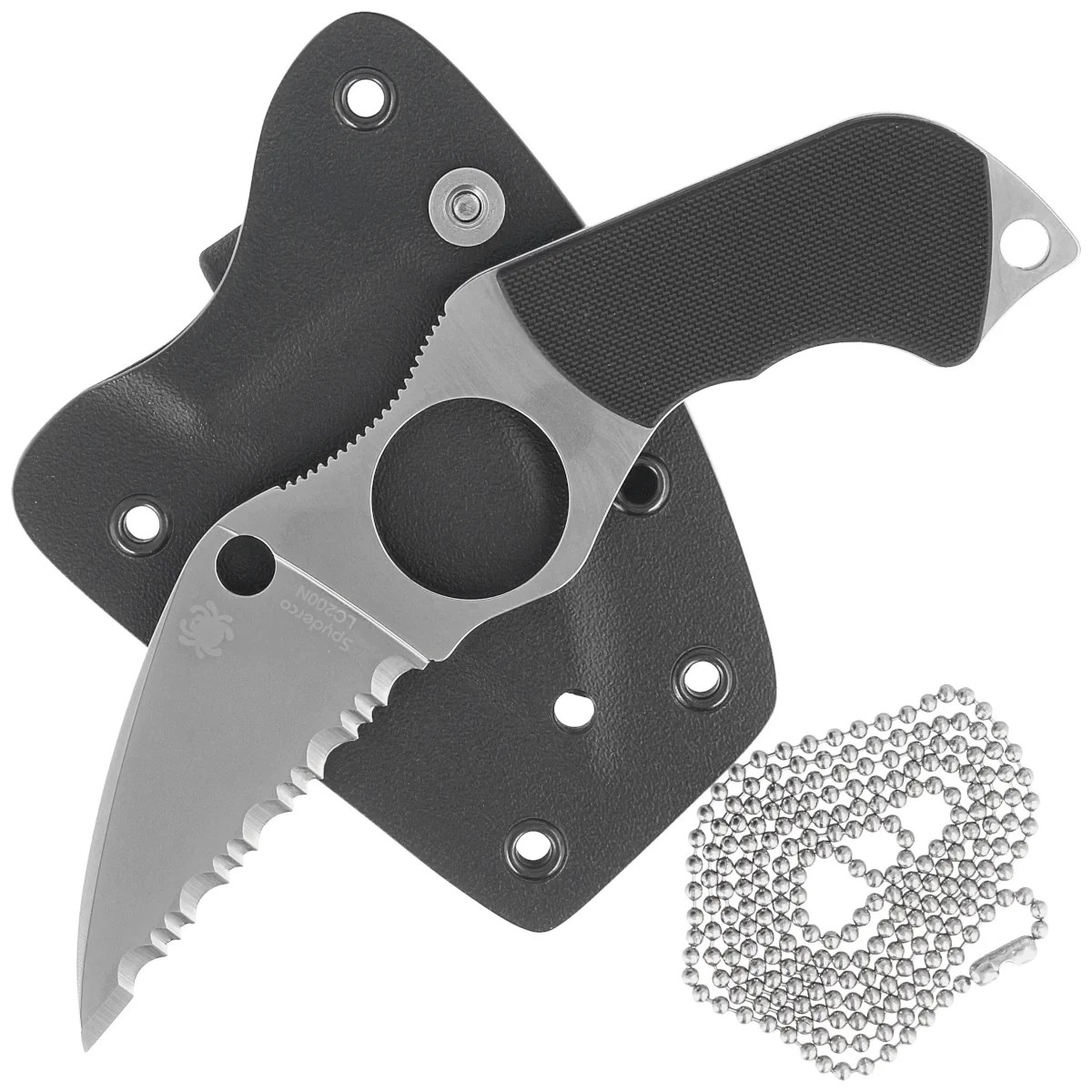 Pochwa - zabezpiecza przed wypadnięciem i wilgocią, umożliwia szybkie dobycie noża. Kaburę można nosić na szyi przy pomocy dołączonego łańcuszka kulkowegoEtui wykonano z utwardzanego polimeru, tworzywa Boltaron®. Wykonane z niego pochwy i kabury charakteryzują się odpornością na zarysowania oraz chemikalia.
