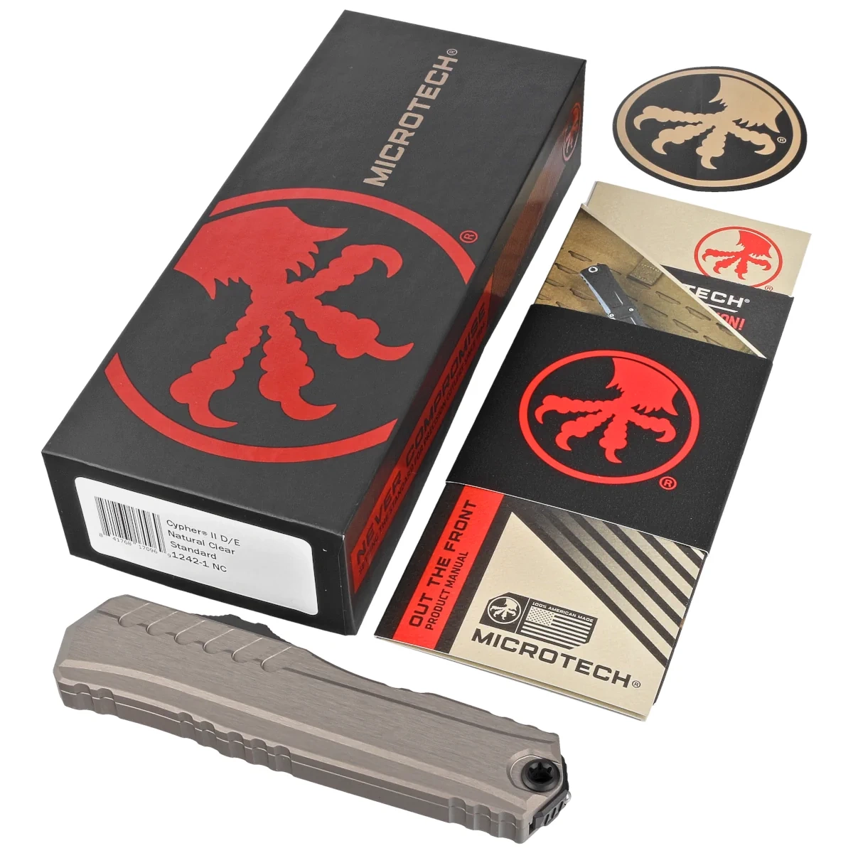 Nóż automatyczny OTF Microtech Cypher II D/E Natural Clear Aluminium, Black M390MK by Deryk Munroe i Tony Marfione (1242-1NC)