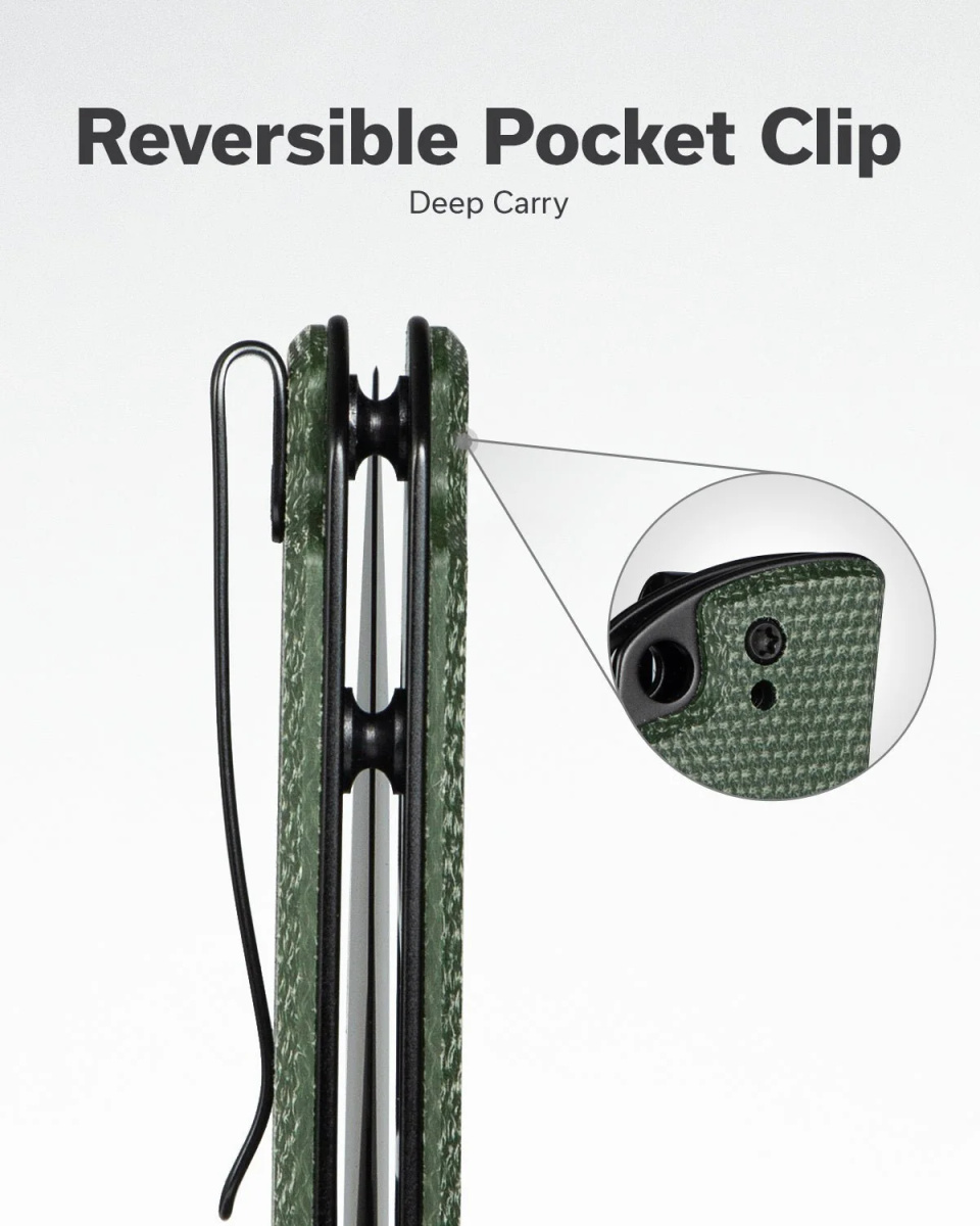 • Praktisk Green Canvas Micarta, Black doskonały folder EDC. Wyprodukowany przez Sencut, markę własną WeKnife. Głownia ze stali 9Cr18MoV, okładziny rękojeści z kompozytu G10. Obustronny kołek i płetwa Flippera umożliwiają otwarcie ostrza na dwa sposoby.