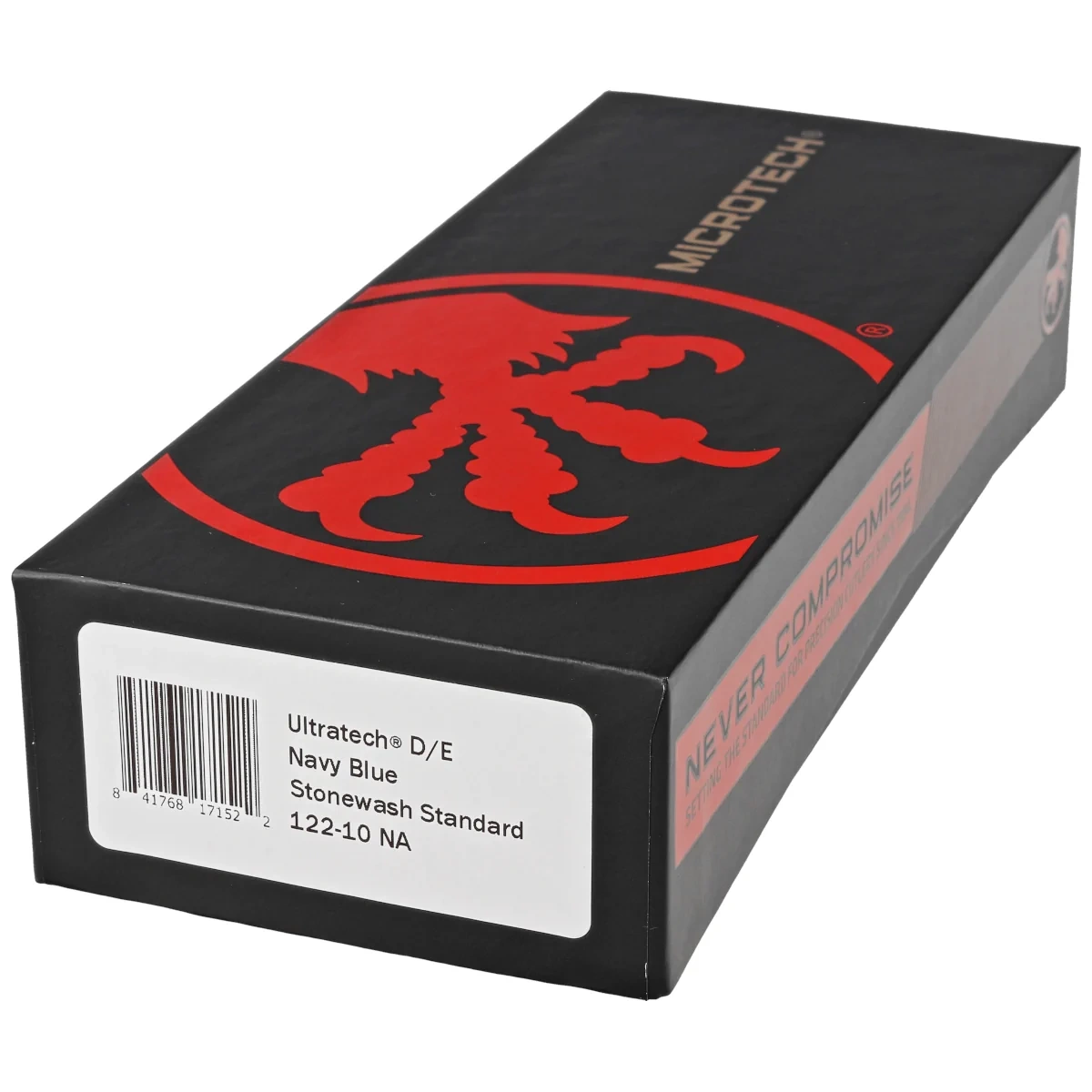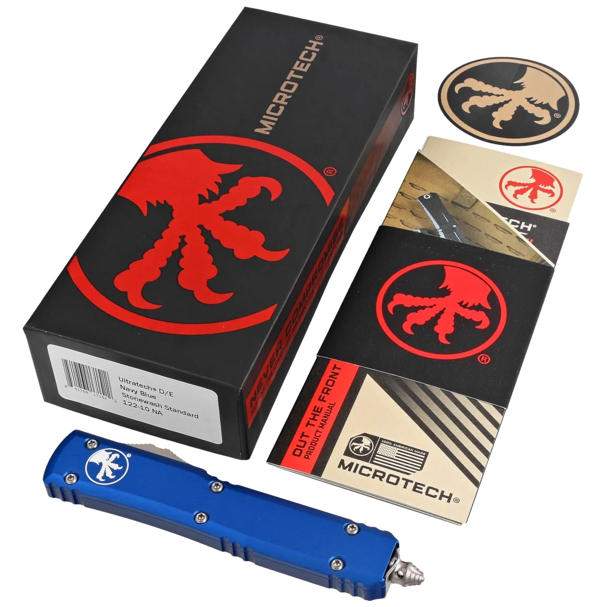 - Ultratech D/E Navy Blue Aluminium, Stonewashed to pełnowymiarowy nóż automatyczny OTF z serii Ultratech. Pracujący w trybie D/A, głownia ze stali Böhler M390, precyzyjnie wykonana rękojeść z aluminium. Projekt Tony Marfione właściciela Microtech Knives