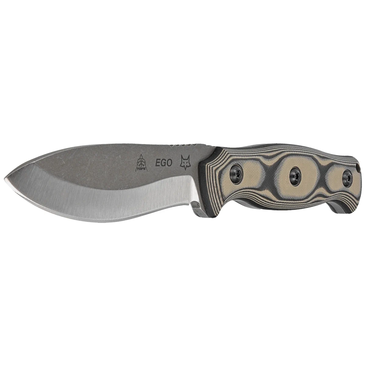 Ego Black/Coyote Tan G10, Stonewashed wspólne dzieło dwóch firm, włoskiej marki Fox oraz amerykańskiej TOPS Knives. Projekt włoskiego knifemakera Alfredo Doricchi, kompaktowy, wszechstronny, skuteczny i wytrzymały nóż full-tang, ze zmodyfikowanym ostrzem drop-point ze stali wysokowęglowej 1095. Rękojeść z dwukolorowego kompozytu G10, pochwa z kydexu. Jest to wyjątkowy przykład włoskiej myśli projektowej oraz surowego, brutalnego wykonania w amerykańskim stylu, doskonała propozycja dla każdego, kto szuka niezawodnego narzędzia na co dzień.