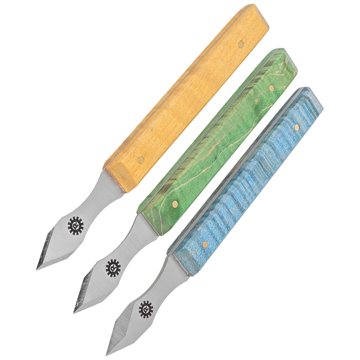 Solidne ostrza ze stali nierdzewnej – precyzyjnie szlifowane i wyposażone w ergonomiczne wcięcia na palce, gwarantujące pewny chwyt i precyzyjne prowadzenie noża. W zestawie znajdują się ostrza o grubościach 0,75 mm, 1,2 mm i 2,5 mm, dzięki czemu można dostosować narzędzie do różnych rodzajów prac – cienkie ostrza zapewniają większą dokładność trasowania, a grubsze zwiększoną trwałość.