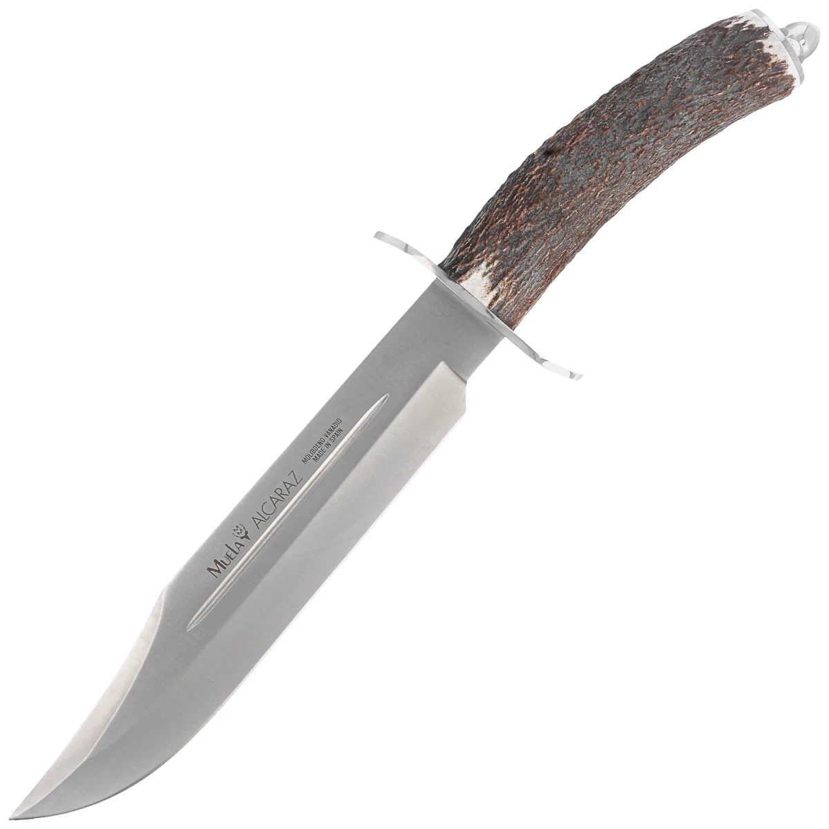 - Alcaraz-22 Deer Stag, Satin, duży nóż myśliwsko-outdoorowy ze stali nierdzewnej X50CrMoV15. Rękojeść z rogu jelenia gwarantuje wygodny i pewny chwyt. Ręcznie szyta skórzana pochwa w zestawie. Nie zawiedzie w żadnej sytuacji!