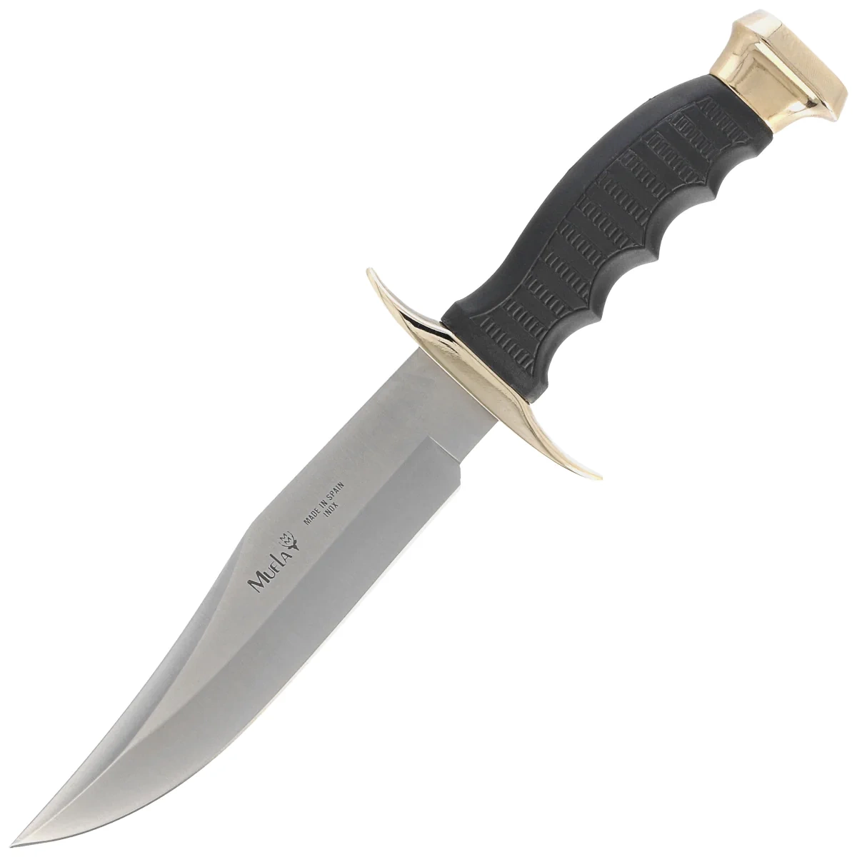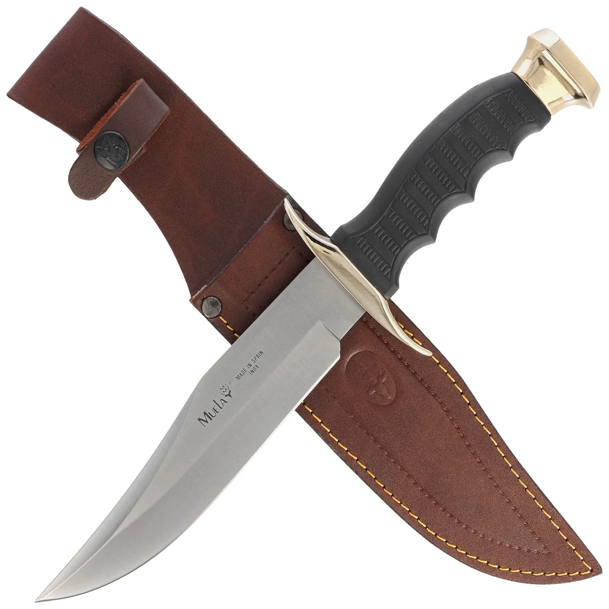 Głownia - szeroka i mocna o profilu Bowie wykończona eleganckim Satynowaniem. Mimo grubości, szlif wklęsły zapewnia doskonałe właściwości tnące połączone ze znakomitą wytrzymałością. Długie fałszywe ostrze zwiększa właściwości przebijające. Obustronna garda wykonana z mosiądzu, zabezpiecza palce przed ześlizgnięciem się na ostrze podczas pracy.
