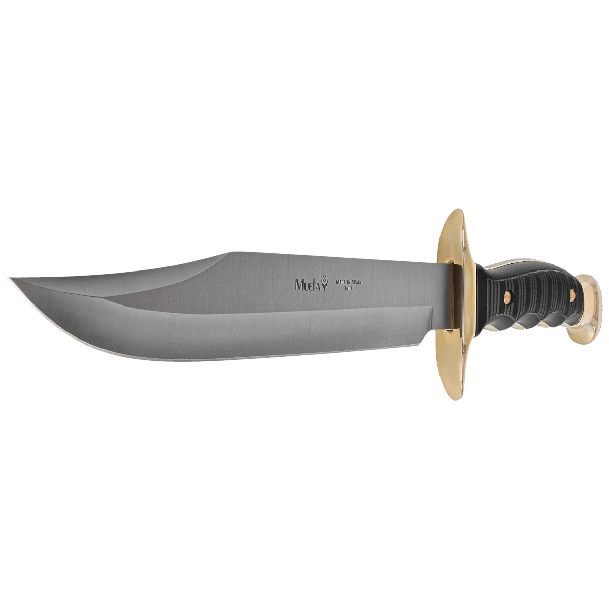 Głownia - szeroka i mocna o profilu Bowie wykończona eleganckim Satynowaniem. Mimo grubości, szlif wklęsły zapewnia doskonałe właściwości tnące połączone ze znakomitą wytrzymałością. Długie fałszywe ostrze zwiększa właściwości przebijające. Obustronna garda wykonana z mosiądzu, zabezpiecza palce przed ześlizgnięciem się na ostrze podczas pracy.