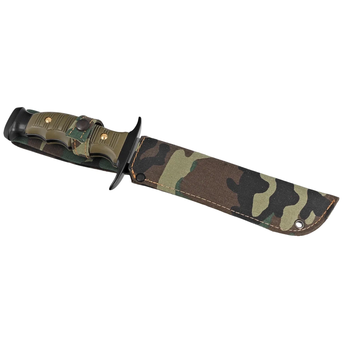 Pochwa - wykonana z wytrzymałej cordury. Zapinana na zatrzask typu Prym. Mocowanie do pasa umożliwia przenoszenie noża w pozycji pionowej.