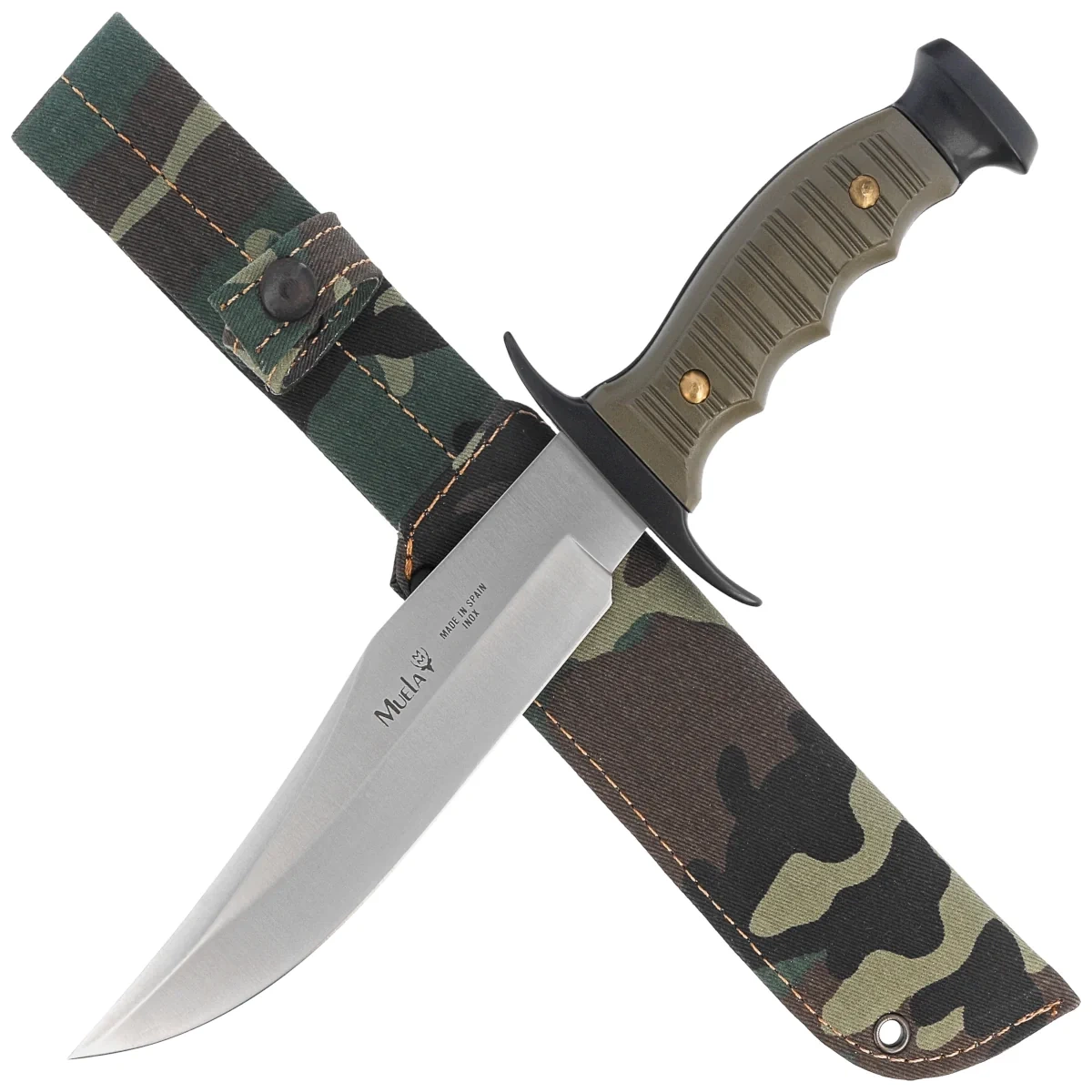 Głownia - szeroka i mocna o profilu Bowie wykończona eleganckim Satynowaniem. Mimo grubości, szlif wklęsły zapewnia doskonałe właściwości tnące połączone ze znakomitą wytrzymałością. Długie fałszywe ostrze zwiększa właściwości przebijające. Obustronna garda wykonana ze stopu cynku i aluminium, zabezpiecza palce przed ześlizgnięciem się na ostrze podczas pracy.
