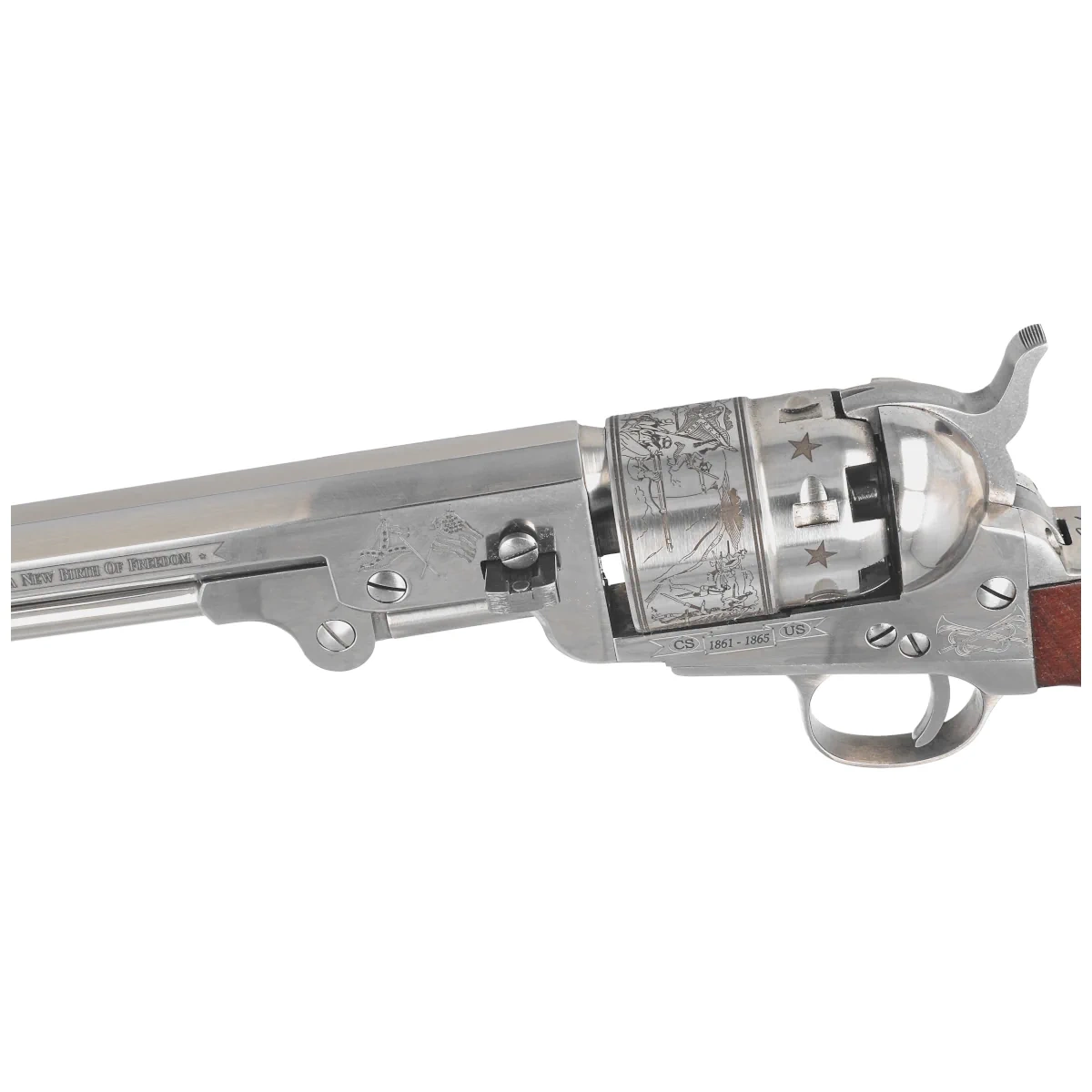 - Colt 1851 Navy Yank Gettysburg Old Silver .44. Zdobiony okolicznościowymi grawerunkami rewolwer czarnoprochowy w kal .44. Edycja limitowana upamiętniająca bitwę pod Gettysburgiem. Rama stalowa z powłoką Old Silver. Okładziny z drewna orzechowego.