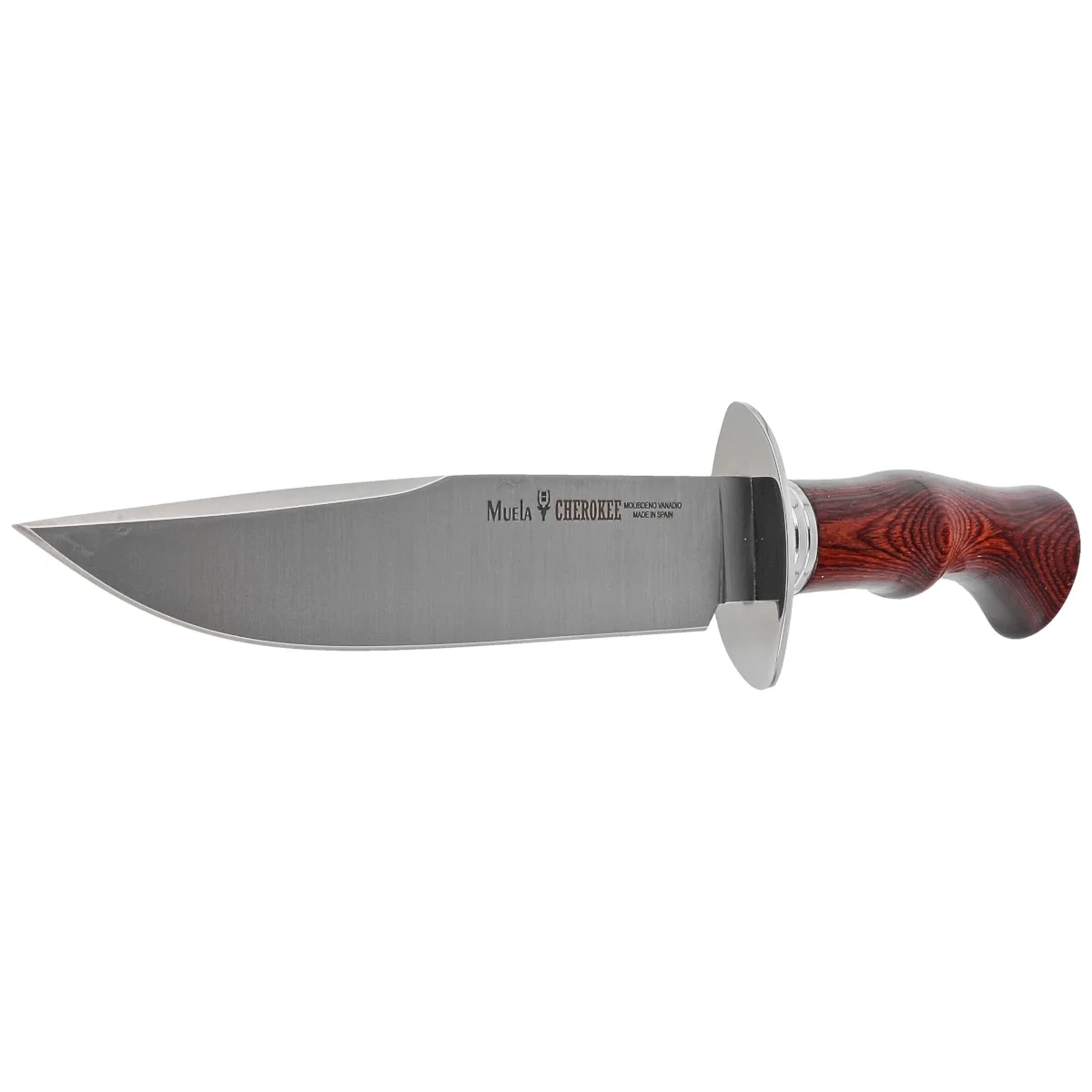 - Cherokee-19R Red Pakka Wood, Satin, duży nóż myśliwsko-outdoorowy ze stali nierdzewnej X50CrMoV15. Rękojeść z laminatu drewna Pakka gwarantuje wygodny i pewny chwyt. Ręcznie szyta skórzana pochwa w zestawie.
