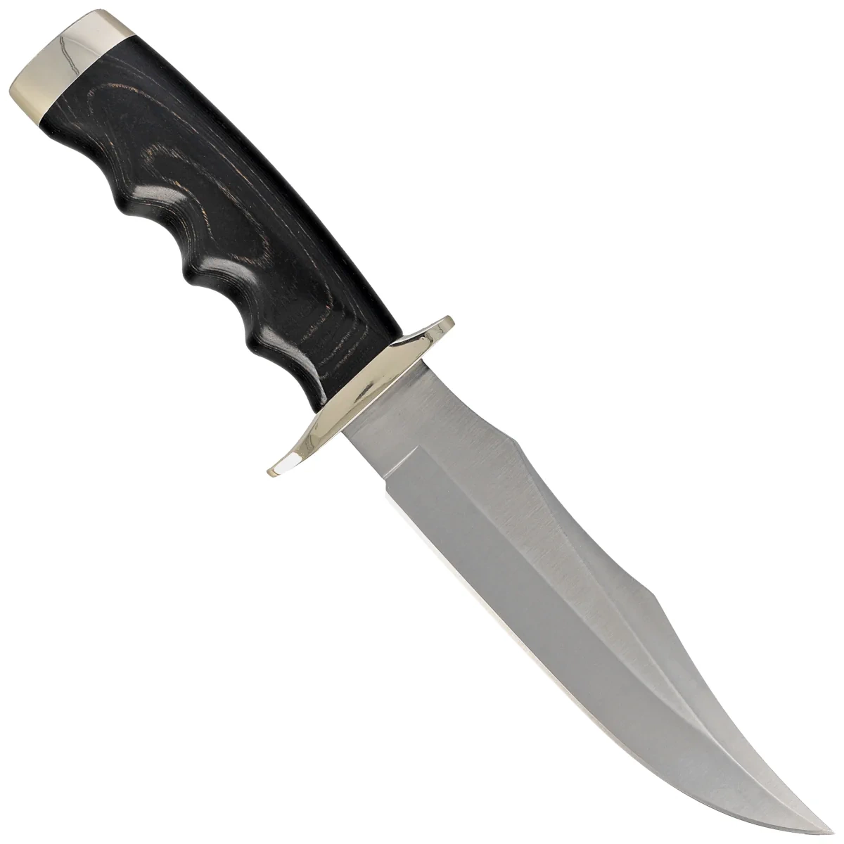 Bufalo-17M Black Pakka Wood, Satin, duży nóż myśliwsko-outdoorowy ze stali nierdzewnej 440. Dzięki temu uzyskujemy poprawę twardości i wytrzymałości klingi. Rękojeść z laminatu pakka gwarantuje wygodny i pewny chwyt. Ręcznie szyta skórzana pochwa w zestawie. Celem było stworzenie niezawodnego narzędzia o dużej poręczności, przeznaczonego do wszelakiego zastosowania w terenie.