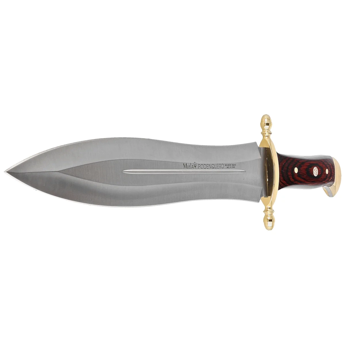 Podenquero-M Pakka Wood, Satin, duży sztylet myśliwsko-outdoorowy ze stali nierdzewnej X50CrMoV15. Rękojeść z drewna pakka gwarantuje wygodny i pewny chwyt. Ręcznie szyta skórzana pochwa w zestawie. Nie zawiedzie w żadnej sytuacji!