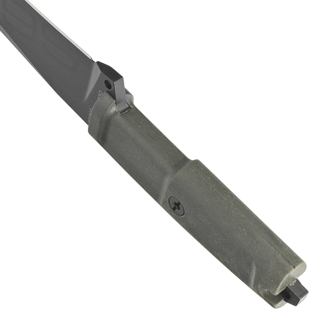 Głownia - masywna o grubości 6.3 mm z długim fałszywym ostrzem. Klinga typu Drop Point z zapewniającą ponadprzeciętne właściwości tnące krawędzią w kształcie fali (Revurve), stosowaną m.in. w dobrych nożach taktycznych, survivalowych, myśliwskich. Wykonane z molibdenowej szybkotnącej stali Böhler S600 o 4.5% zawartości chromu co czyni go stalą ulegającą utlenieniu. Z tego powodu Extrema Ratio wybrała nowe pokrycie ostrza - EXP DARK na którym uwieczniła nazwę stali S600, jej wyjątkową twardość 64 HRC oraz informacje o obróbce kriogenicznej Cryogenic - wszystkie cechy podkreślające wyjątkowość tego stopu. Ostrze gładkie Plain wyprowadzono wysokim szlifem płaskim (Flat grind). Wystająca poza obrys rękojeści klinga tworzy gardę, która zabezpiecza przed zsunięciem się ręki na ostrze podczas pracy.