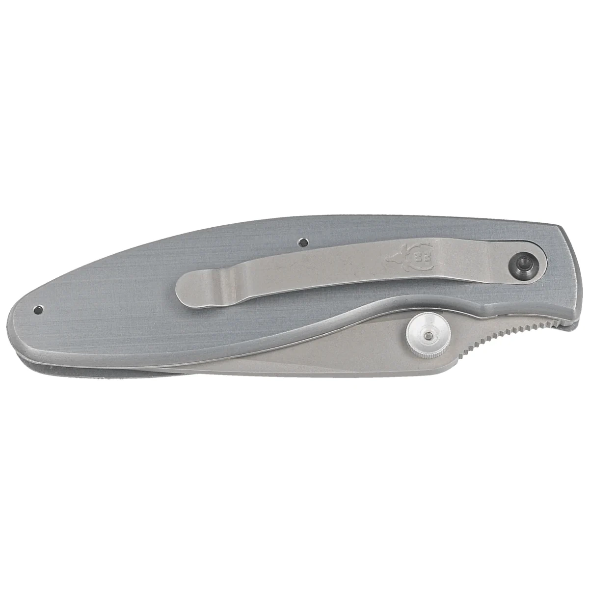 Głownia - klasyczny Clip Point wykończony eleganckim satynowaniem. Wydatny brzusiec wydłuża długość krawędzi tnącej w stosunku do długości klingi zbiegając się w kierunku ostrego jak igła czubka noża. Grubość klingi zapewnia wysoką wytrzymałość podczas gdy płaski szlif daje doskonałą geometrię krawędzi tnącej oraz ekstremalną wydajność cięcia. Otwierany za pomocą obustronnego kołka w klindze. Fragment grzbietu klingi tworzy rampę pod kciuk ułatwiającą kontrolę nad nożem. Całość blokowana jest sprawdzoną i popularną blokadą liner lock.