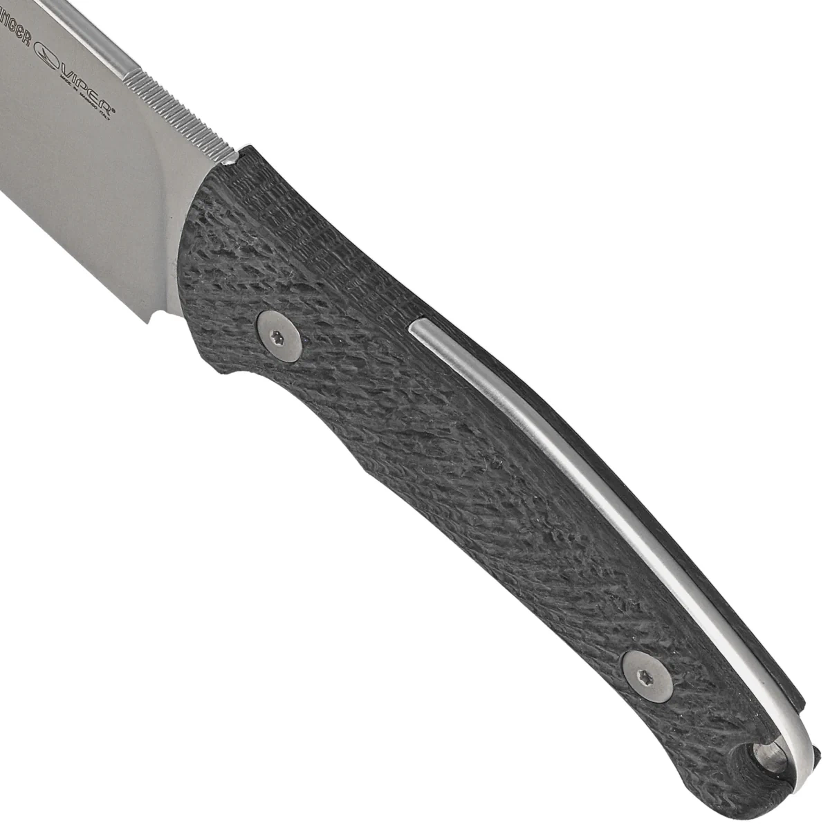 - Ranger Carbon Fiber, Satin projektu Jensa Ansø. Solidny kawałek sprawdzonej stali nierdzewnej N690, wielofunkcyjny nóż włoskiej marki Viper. Wygodna rękojeść z kompozytu Carbon Fiber, pochwa z wysokojakościowej skóry z mocowaniem do pasa.