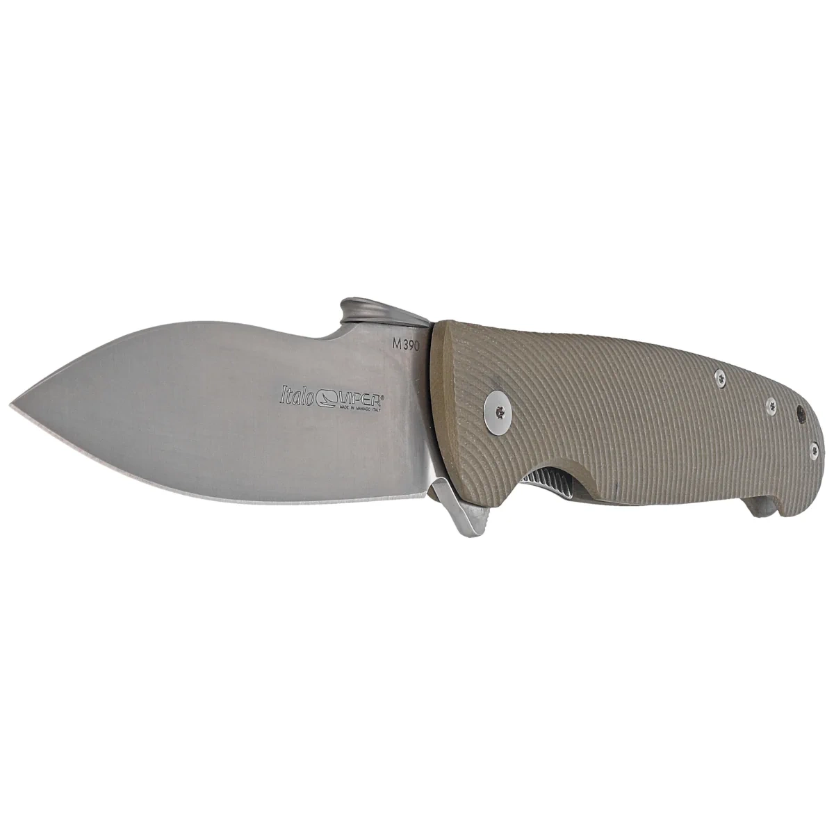 - Italo Green G10, Satin wyjątkowy folder E.D.C. skierowany do wymagających odbiorców, łączy włoski styl z wysoką użytkowością. Projekt knifemaker'a Fabrizio Silvestrellego. Głownia ze stali Böhler M390, wygodna rękojeść z kompozytu G10.