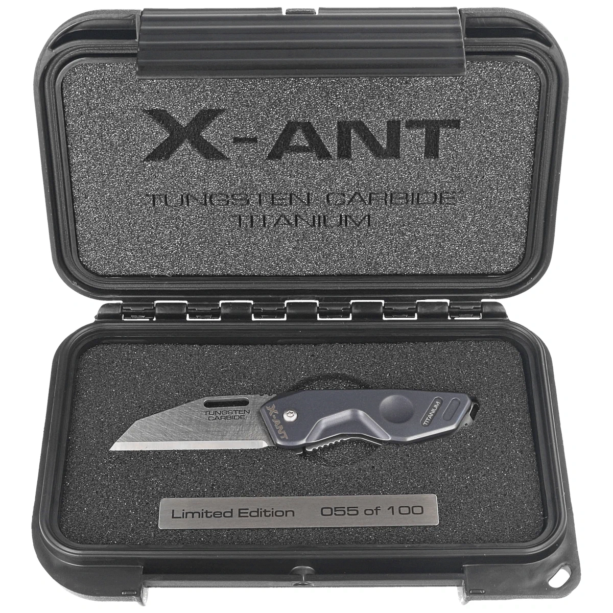 - X-ANT LE No 055/100 Blue Titanium, Sandblast Sintered Tungsten Carbide, limitowana do 100 szt. edycja noża składanego. Rękojeść z tytanu, głownia z z węglika wolframu o twardości 71 HRC! Doskonałe narzędzie, które możesz mieć zawsze przy sobie!