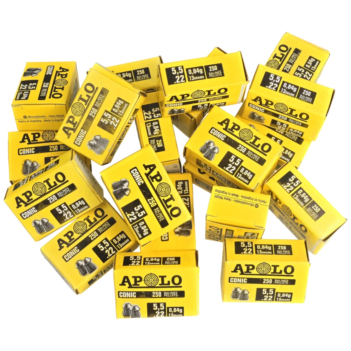 Conic .22 precyzyjny śrut w kalibrze 5.5 mm o wysokim współczynniku balistycznym (Ballistic Coefficient) BC: 0.018 argentyńskiej firmy Apolo. Przeznaczony do celnego strzelania rekreacyjnego oraz sportowego, łączy w sobie aerodynamikę śrutu Domed ze zdolnością penetracji amunicji Point. Ekonomiczne opakowanie 250 szt. Bestseller w wyśmienitej cenie!