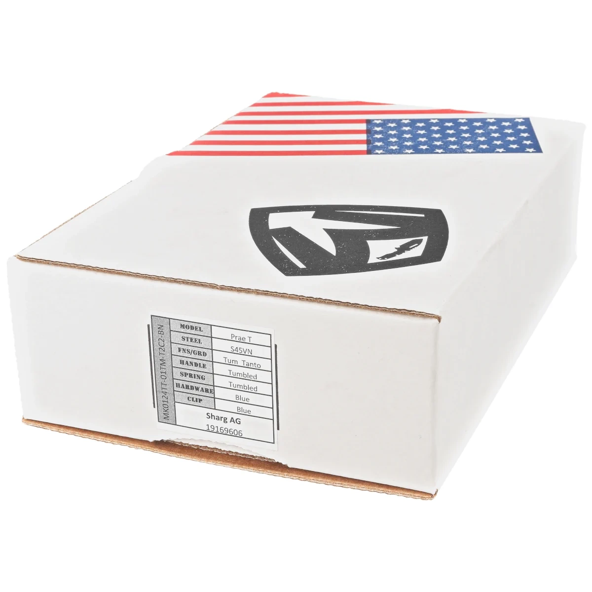Nazwa: Praetorian T Tanto Tumbled Titanium, Blue HW/Clip, NP3 Breaker, Tumbled