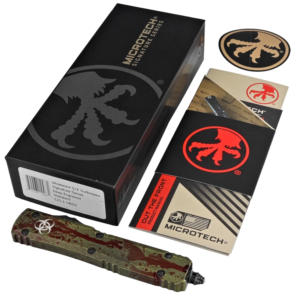 - Ultratech S/E Signature Outbreak Aluminium, Outbreak pełnowymiarowy nóż automatyczny OTF z linii Signature. Model wyróżnia się unikalnym wzornictwem Outbreak oraz głęboko grawerowanym znakiem Biohazard, symbolem serii Outbreak. Projekt Tony Marfione!