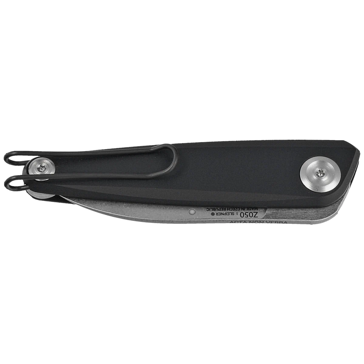 - Z050 BB Black Aluminium, Stonewashed, kompaktowy nóż EDC z mechanizmem Double Detent Slipjoint, otwierany dwoma rękami. Dzięki temu i kompaktowym wymiarom, dozwolony do noszenia w większości krajów z obostrzeniami w prawie.