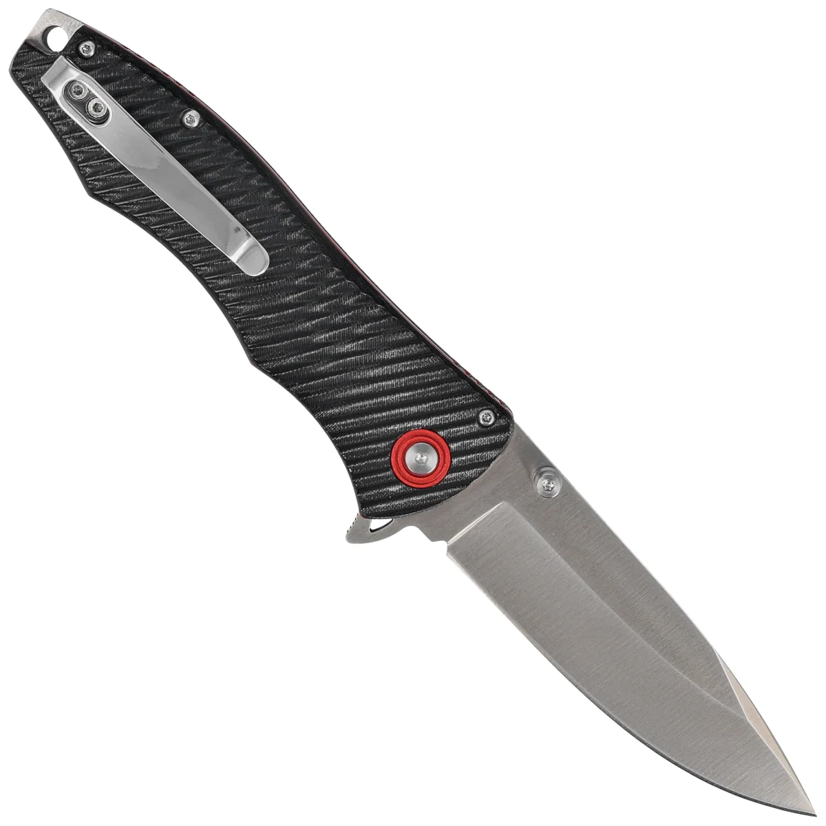 Głownia - typu Clip Point, wykończona eleganckim satynowaniem. Wydatny brzusiec wydłuża długość krawędzi tnącej w stosunku do długości klingi zbiegając się w kierunku ostrego jak igła czubka noża. Grubość klingi zapewnia wysoką wytrzymałość podczas gdy wysoki, płaski szlif daje doskonałą geometrię krawędzi tnącej oraz ekstremalną wydajność cięcia. Obustronny kołek po bokach głowni Thumb Stud oraz Flipper umożliwiają szybkie otwarcie noża. Fragment grzbietu klingi pokryto upper jimping, karbowanym oparciem pod kciuk ułatwiającym kontrolę nad nożem. Całość blokowana jest sprawdzoną i popularną blokadą liner lock.