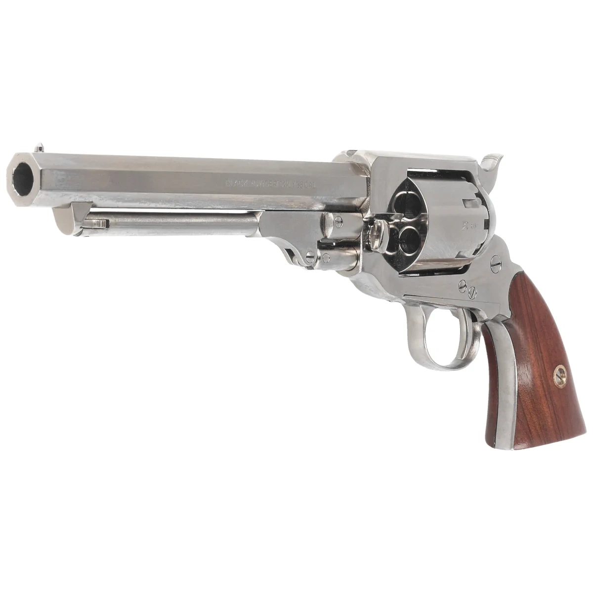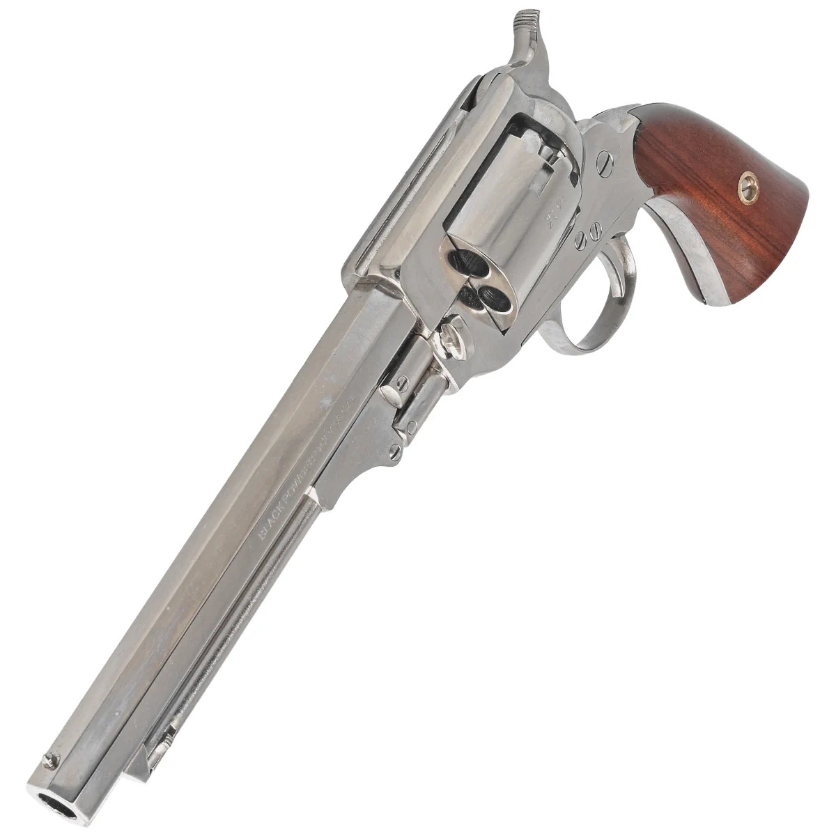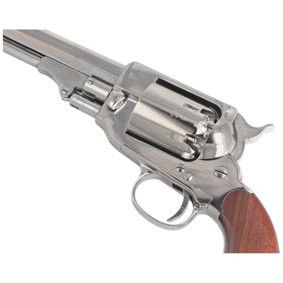 • 1862 Spiller & Burr sześciostrzałowy kapiszonowy rewolwer czarnoprochowy w kal. .36 to interesująca kombinacja dwóch legendarnych rewolwerów. Łączy w sobie najlepsze cechy Colta i Remingtona. Rama zamknięta, wykończenie niklowane, lufa 6.5".