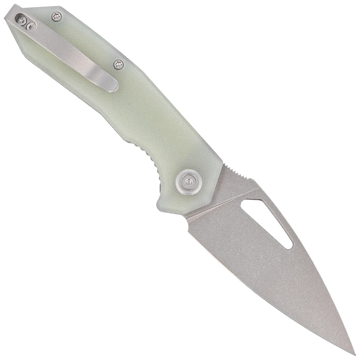 • Coeus Jade G10, Stonewashed wyrazisty folder szeroka głownia ze stali nierdzewnej Sandvik 14C28N. Wygodna rękojeść z niezwykle trwałego kompozytu G10. Kubey legendarna trwałość i funkcjonalność narzędzi, które służą latami!