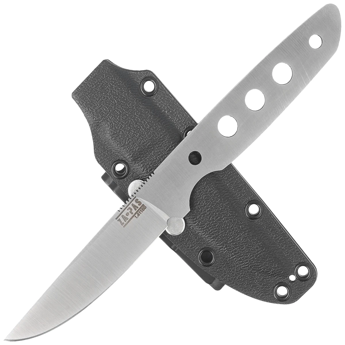EHO Naked Satin 1.4116S to wyjątkowe narzędzie zaprojektowane z myślą o użytkownikach ceniących funkcjonalność i elegancję. Monolityczna konstrukcja typu full tang zapewnia niezrównaną wytrzymałość podczas użytkowania. Głownia wykonana ze stali nierdzewnej 1.4116S, znanej z doskonałej odporności na korozję i łatwości ostrzenia. Rękojeść została zaprojektowana z serią precyzyjnie rozmieszczonych otworów, które nie tylko redukują wagę noża, ale także umożliwiają personalizację poprzez owinięcie jej paracordem lub innym materiałem, dostosowując uchwyt do indywidualnych potrzeb użytkownika. Dołączona pochwa z kydexu oferuje pewne i bezpieczne przechowywanie noża, a jej przemyślany design pozwala na różnorodne opcje montażu – zarówno na pasie, jak i na krawędzi kieszeni. Dzięki temu nóż EHO Naked Satin 1.4116S staje się niezastąpionym towarzyszem w codziennych wyzwaniach, łącząc w sobie nowoczesny design z praktycznymi rozwiązaniami.