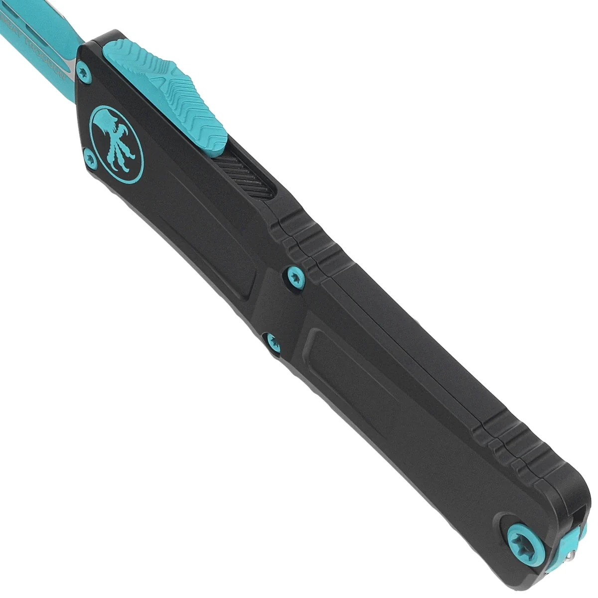 Combat Troodon Gen III D/E Black Aluminium, Turquoise ten największy z noży automatycznych, to szczyt precyzyjnej inżynierii i taktycznej sprawności w dziedzinie noży OTF (Out The Front). Zbudowany z myślą o szerokim spektrum zastosowań użytkowych, może pochwalić się większym o 25% rozmiarem w porównaniu do flagowego Troodona. Precyzyjnie wykonany, wyposażony w wyrafinowany i piekielnie szybki mechanizm wysuwający ostre jak brzytwa ostrze. W 100% wyprodukowany i zmontowany w USA. Projekt Anthony'ego Marfione, knifemakera i właściciela Microtech Knives.