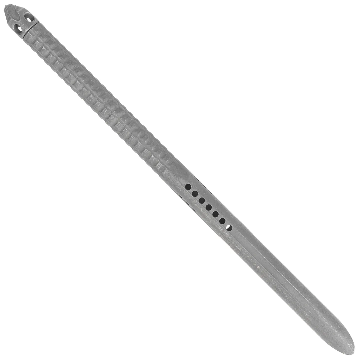 TAC-P Spike Gray Apocalyptic to taktyczne narzędzie wykonane z wysokogatunkowej stali nierdzewnej 410. Smukła konstrukcja z igłowatym czubkiem, który został zaprojektowany z myślą o precyzyjnej penetracji nawet najtwardszych materiałów. Na końcu uchwytu umieszczono zbijak do szyb, pozwalający na szybkie i skuteczne tłuczenie szkła w sytuacjach awaryjnych. Dzięki specjalnie profilowanej rękojeści chwyt pozostaje pewny oraz stabilny, także w wilgotnym środowisku lub podczas intensywnej pracy. W zestawie znajduje się dopasowana kabura wykonana z trwałego tworzywa kydex, umożliwiająca wygodne noszenie przy pasku lub na kamizelce taktycznej. Całość zaprojektowano z myślą o dyskrecji, wygodzie użytkowania oraz najwyższym stopniu niezawodności. Produkt doceniany jest przez specjalistów oraz miłośników sprzętu klasy premium za precyzyjne wykonanie, minimalistyczny design oraz gotowość do pracy w najbardziej wymagających warunkach.