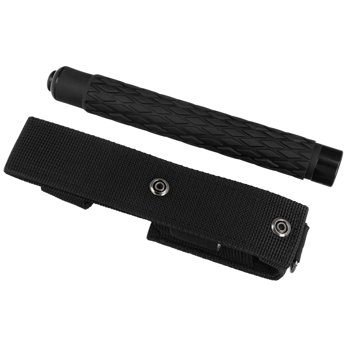 Łatwe przenoszenie – w zestawie znajduje się nylonowa kabura zapinana na rzep, umożliwiająca stabilne przypięcie pałki do pasa. Metalowy D-ring na dole pokrowca pozwala na podpięcie dodatkowego wyposażenia.