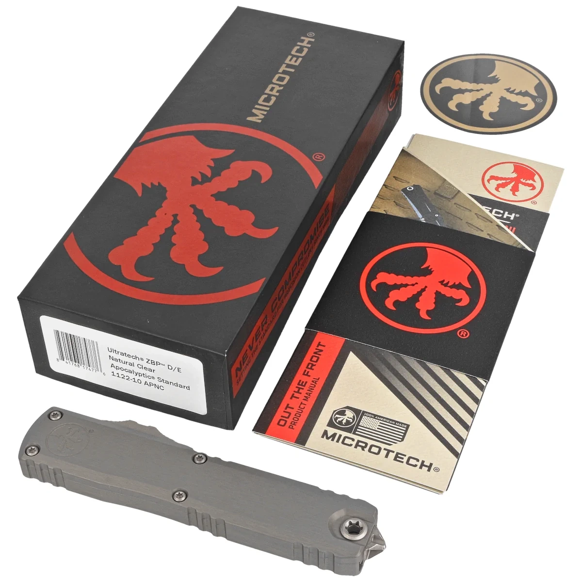 Ultratech Gen III ZBP D/E Natural Clear Aluminium, Apocalyptic to nowa odsłona serii Ultratech - pierwszy nóż OTF firmy Microtech bez jakiegokolwiek luzu ostrza po jego rozłożeniu! Automat z ostrzem "blade play free" wyróżnia się szeregiem usprawnień, takich jak; Crud Kutter™, Dual-Fuel Drive Train™, Zero Blade Play™. Przeprojektowano również rękojeść, wyposażając ją w rozwiązania znane z innych modeli. Pracujący w trybie D/A (Double Action), umożliwia błyskawiczne wysunięcie i schowanie ostrza za pomocą jednego ruchu kciuka. Projekt autorstwa Tony’ego Marfione, właściciela Microtech Knives, łączy w sobie nowoczesny design z najwyższą jakością wykonania