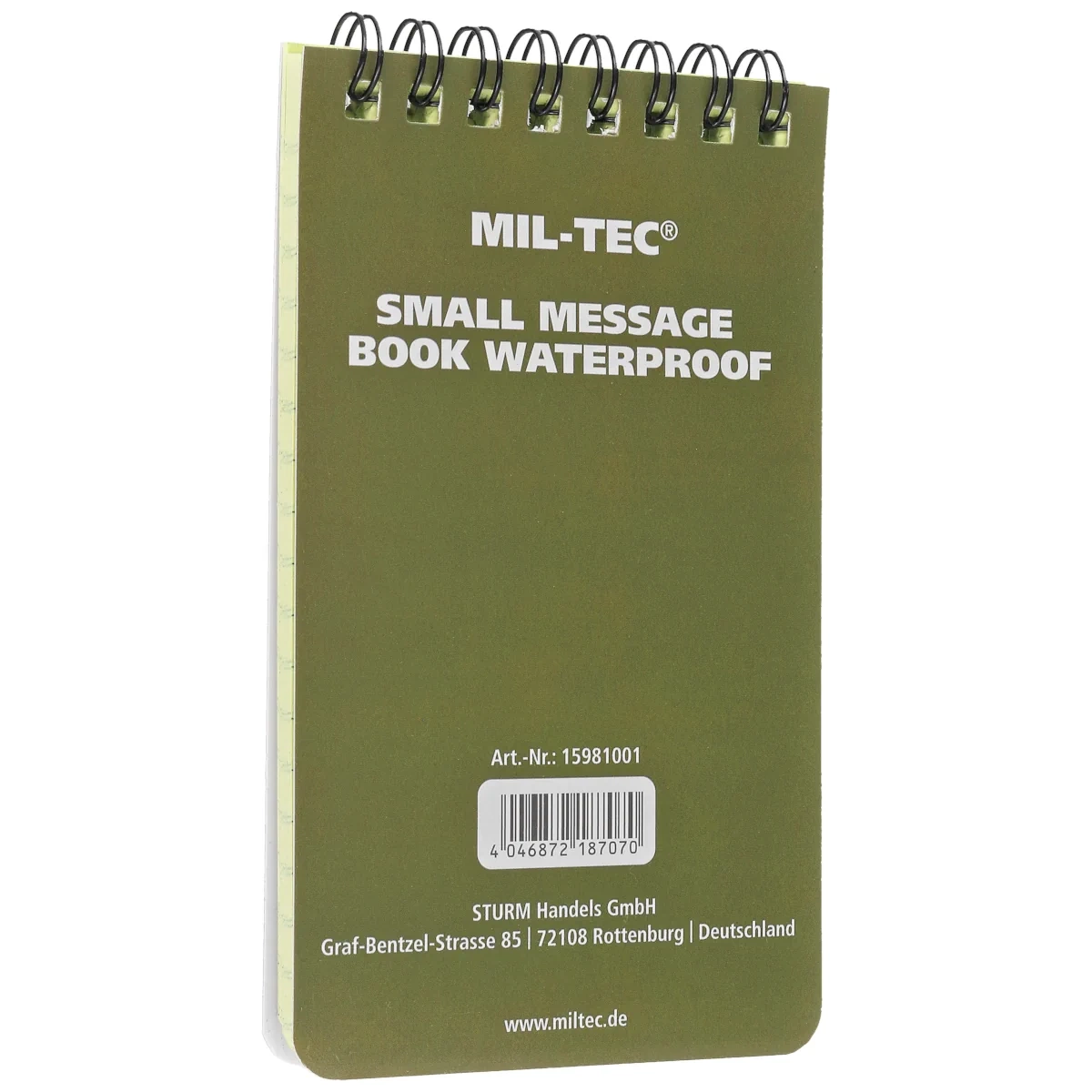 Notes wodoodporny Mil-Tec Message Book Waterproof Small – kompaktowy notatnik o wymiarach 7,5 × 13 cm, który umożliwia zapisywanie i odczytywanie notatek w każdych warunkach pogodowych, nawet podczas deszczu, śnieżycy czy pod wodą. Niezastąpiony podczas wypraw outdoorowych, w turystyce, kartografii oraz dla służb mundurowych.