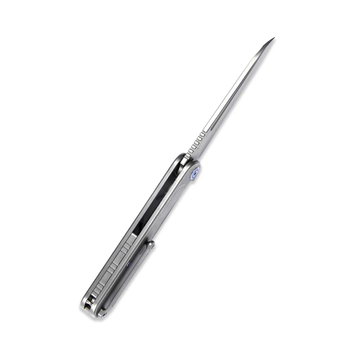 Dandy Grey Titanium, Sandblasted to wyjątkowy folder w stylu gentleman’s, zaprojektowany przez Maksima Tkachuka. Każdy detal został dopracowany z najwyższą precyzją, łącząc estetykę z niezawodnością. Głownia z wysokogatunkowej stali CPM S90V odznacza się znakomitą odpornością na ścieranie oraz imponująco długim trzymaniem ostrości.  Rękojeść, wykonana z tytanu, zapewnia niezrównaną wytrzymałość i lekkość. Piaskowana powierzchnia nadaje subtelną, matową fakturę, zwiększając pewność chwytu. Ergonomiczne wyprofilowanie dostosowuje się do dłoni, gwarantując komfort nawet podczas długiego użytkowania. Mechanizm otwierania oparty na łożyskach kulkowych i flipperze pozwala na błyskawiczne rozłożenie ostrza. Blokada frame lock gwarantuje maksymalne bezpieczeństwo i stabilność w trakcie użytkowania. Dandy to niezawodny towarzysz codziennych wyzwań. Wyrafinowany, solidny, a jednocześnie subtelnie elegancki.