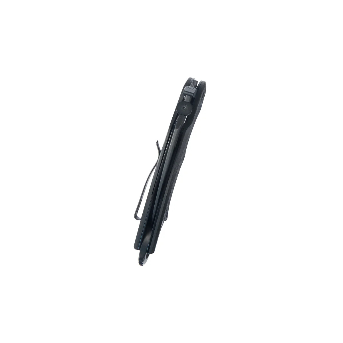Rękojeść - wykonana z kompozytu G10, materiału niezwykle wytrzymałego mechanicznie i praktycznie całkowicie odpornego na warunki atmosferyczne i działanie chemikaliów, teksturowane dla poprawienia pewności uchwytu. Wykonane z przodu podcięcie na palec (fore finger groove) poprawia pewność uchwytu. Masywny backspacer zakończono pierścieniem palcowym (Back Ring). Zapobiega on przypadkowemu wypuszczenia noża z ręki a także ułatwia on obracanie foldera wokół palca, umożliwiając wykonywanie tradycyjnych technik. Oś pivota zdobi stylizowane logo. Jednopozycyjny (lewa) klips pozwala przenosić nóż w pozycji tip-up (czubkiem do góry.