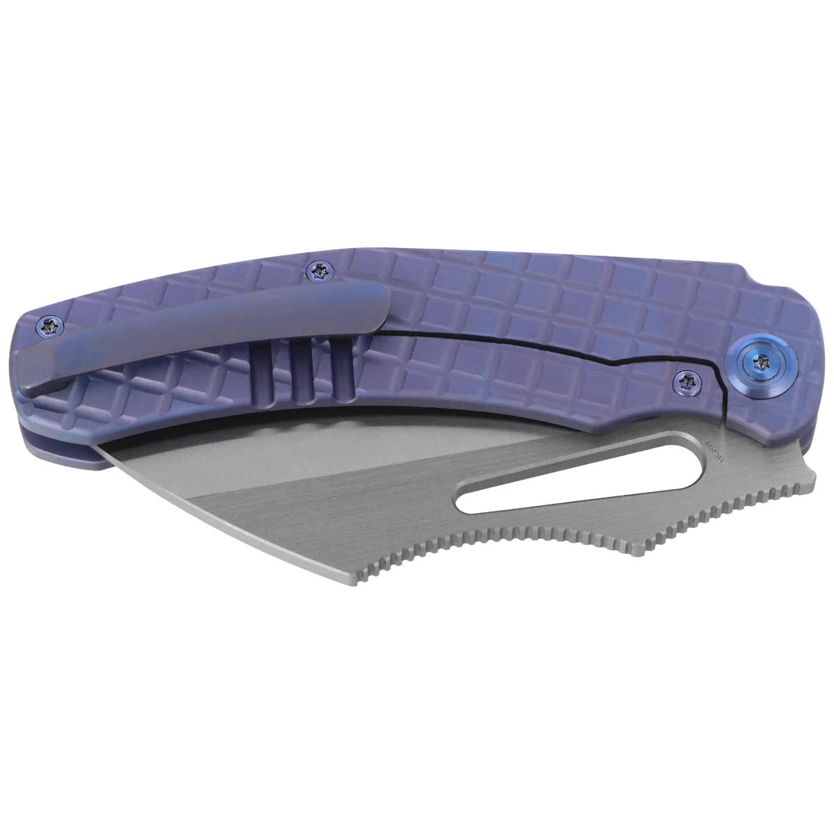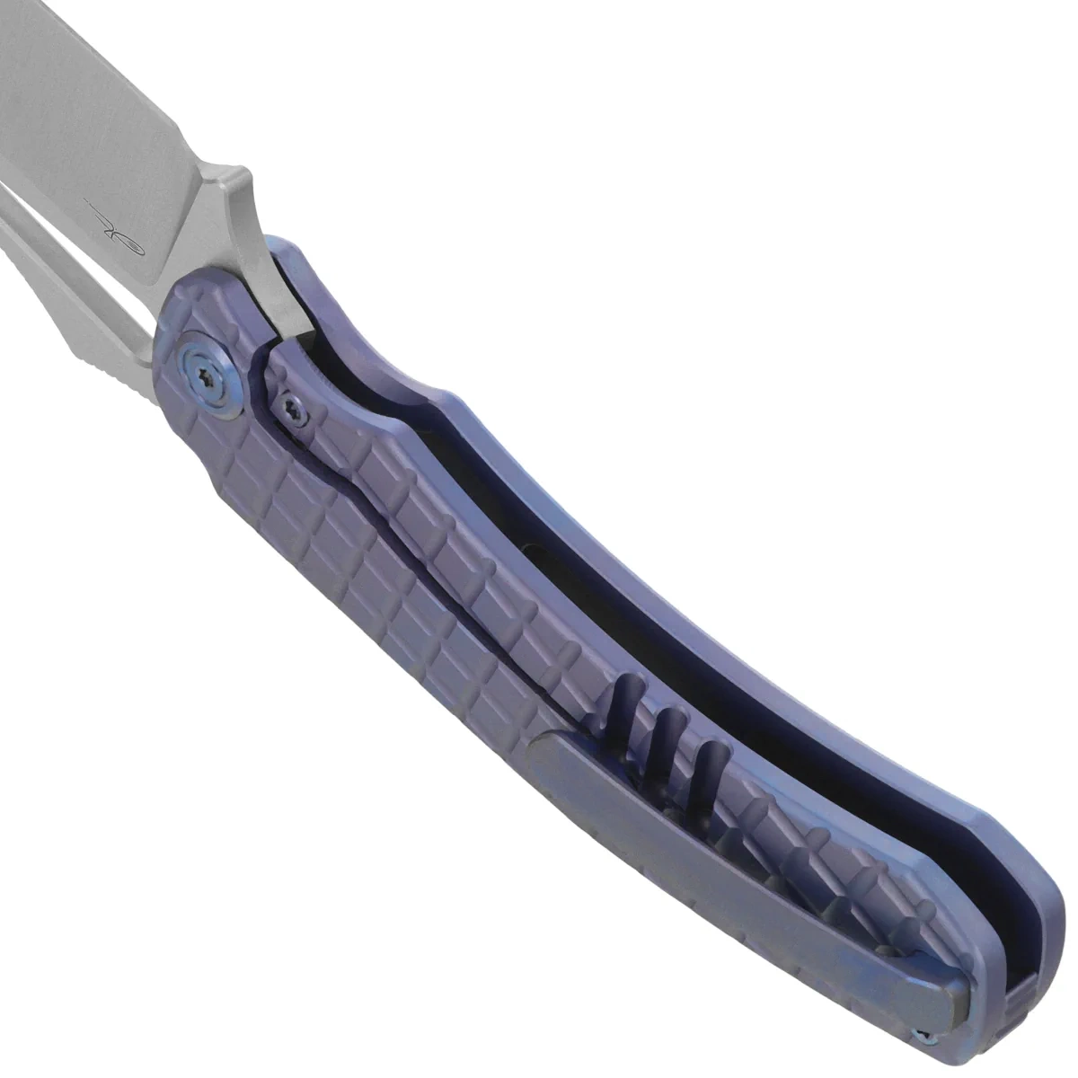 - Sylow Blue Titanium, Stonewashed, mocno zbudowany folder EDC, projekt Jamesa Lowe'a. Tytanowa rękojeść z charakterystycznym Frag Pattern, głownia ze stali nierdzewnej Sandvik 14C28N hartowanej próżniowo i wymrażanej. Doskonałe narzędzie!