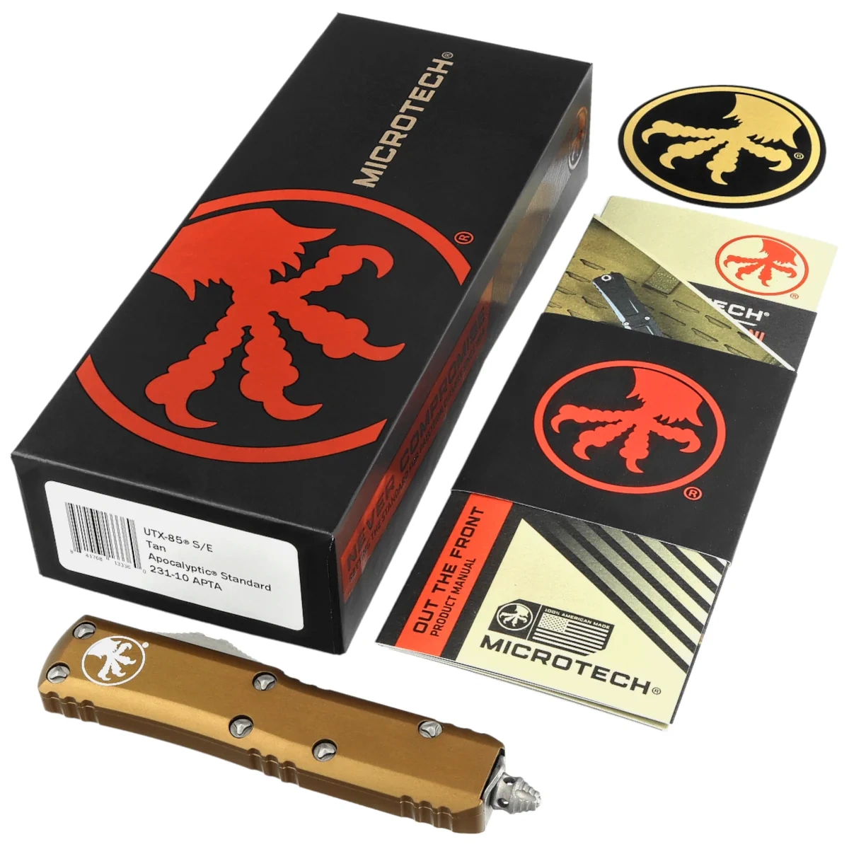 Nóż automatyczny OTF Microtech UTX-85 S/E Tan Aluminium, Apocalyptic M390 (231-10APTA)