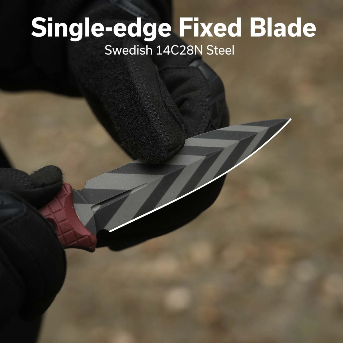 Głownia - smukła, typu Dagger, pokryta powłoką o wzorze Black/Gray Striped. Ostrze gładkie Plain, jednostronnie ostrzona (Single Edge), płaski szlif (Flat Grind) daje doskonałą geometrię krawędzi tnącej oraz ekstremalną wydajność cięcia. Rozszerzenie przy rękojeści tworzy gardę zabezpieczającą przed zsunięciem się dłoni na ostrze. Choil ułatwia ostrzenie.