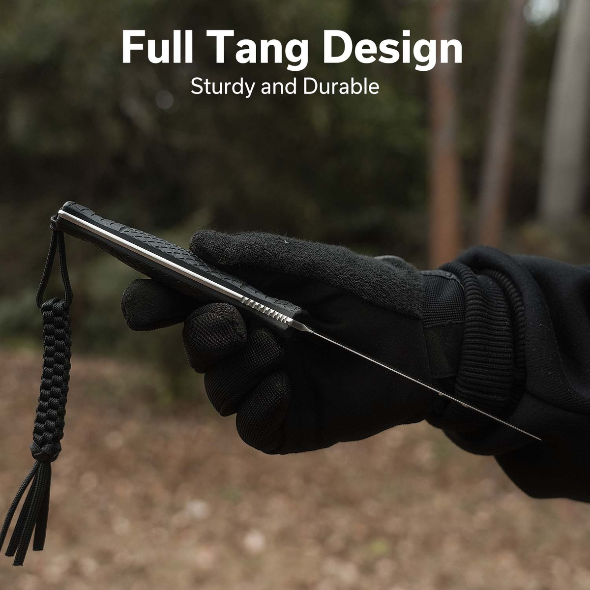Perfrico Black G10, Satin to nowoczesny sztylet o budowie Full Tang, ze stylistyką inspirowaną nożami militarnymi. Smukła głownia, jednostronnie ostrzona, wykonana ze stali nierdzewnej Sandvik 14C28N. Materiał ten gwarantuje wysoką odporność na korozję oraz długotrwałe zachowanie ostrości roboczej krawędzi. Rękojeść jest pokryta głębokim, agresywnym moletowaniem, co zapewnia pewny, antypoślizgowy chwyt także w rękawicach lub wilgotnym otoczeniu. Kompozyt G10, użyty do produkcji rękojeści, charakteryzuje się odpornością na pękanie, temperaturę oraz uszkodzenia mechaniczne. Sztylet jest przenoszony w pochwie wykonanej z kydexu, który zapewnia pewne trzymanie narzędzia. Uniwersalne mocowanie typu Tek-Lok pozwala na wygodne dopasowanie noża do oporządzenia lub pasa, umożliwiając wygodne noszenie w pozycji pionowej lub poziomej. Produkt został stworzony z myślą o praktycznym użytkowaniu oraz niezawodności w każdej sytuacji.