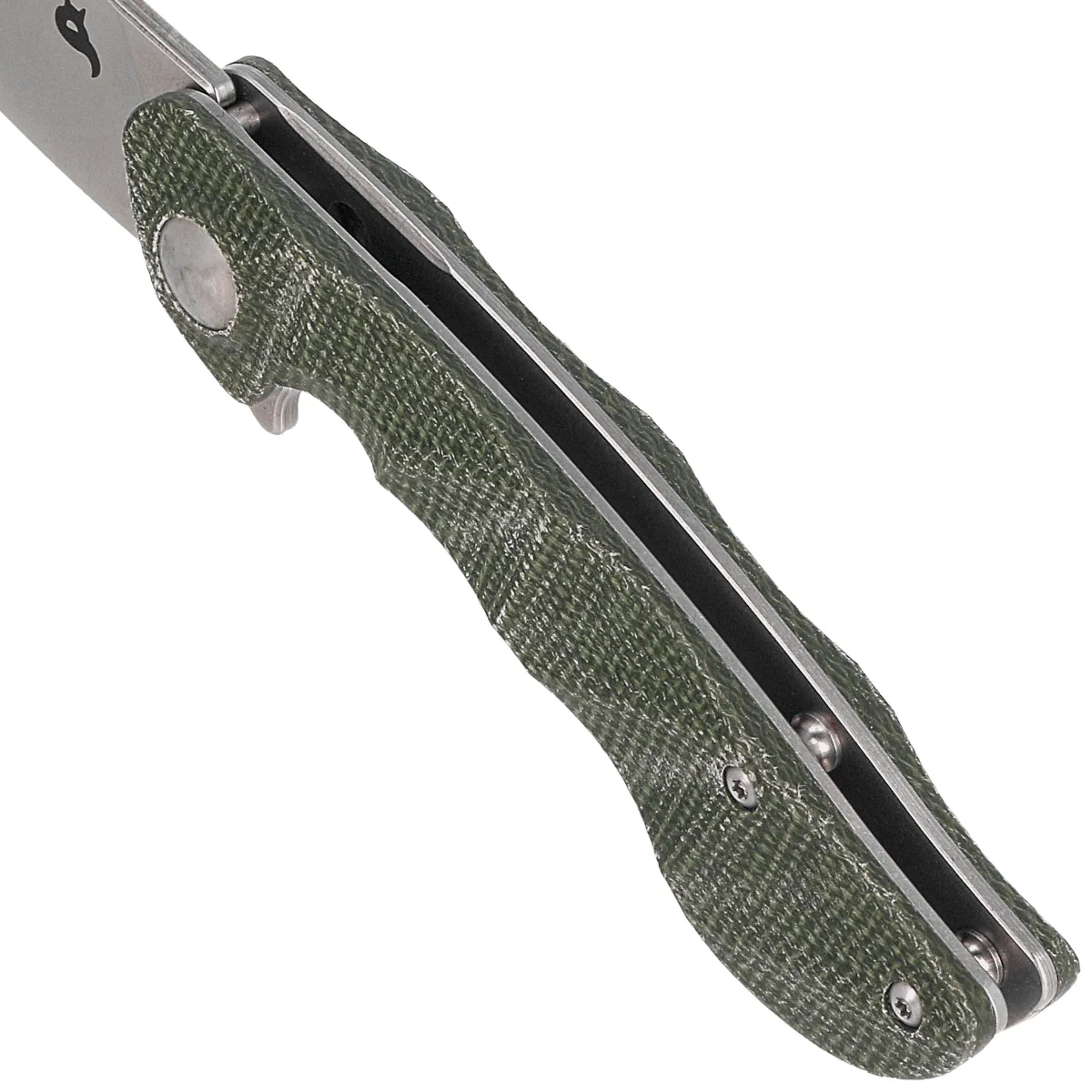 - Dripper OD Green Canvas Micarta, Stonewashed, elegancki nóż składany łączący funkcjonalność z wyrafinowanym designem. Rękojeść z kompozytu Canvas Micarta zapewnia pewny chwyt, a ostrze ze stali VG-10 oferuje trwałość, precyzję i niezawodność.
