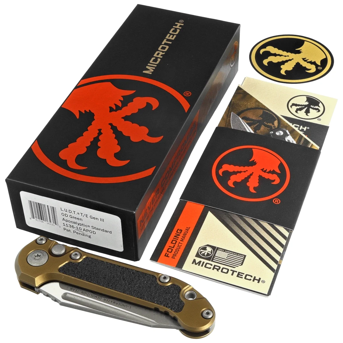 Nóż automatyczny Microtech LUDT Gen III T/E OD Green Aluminium, Apocalyptic M390MK by Tony Marfione (1136-10APOD)